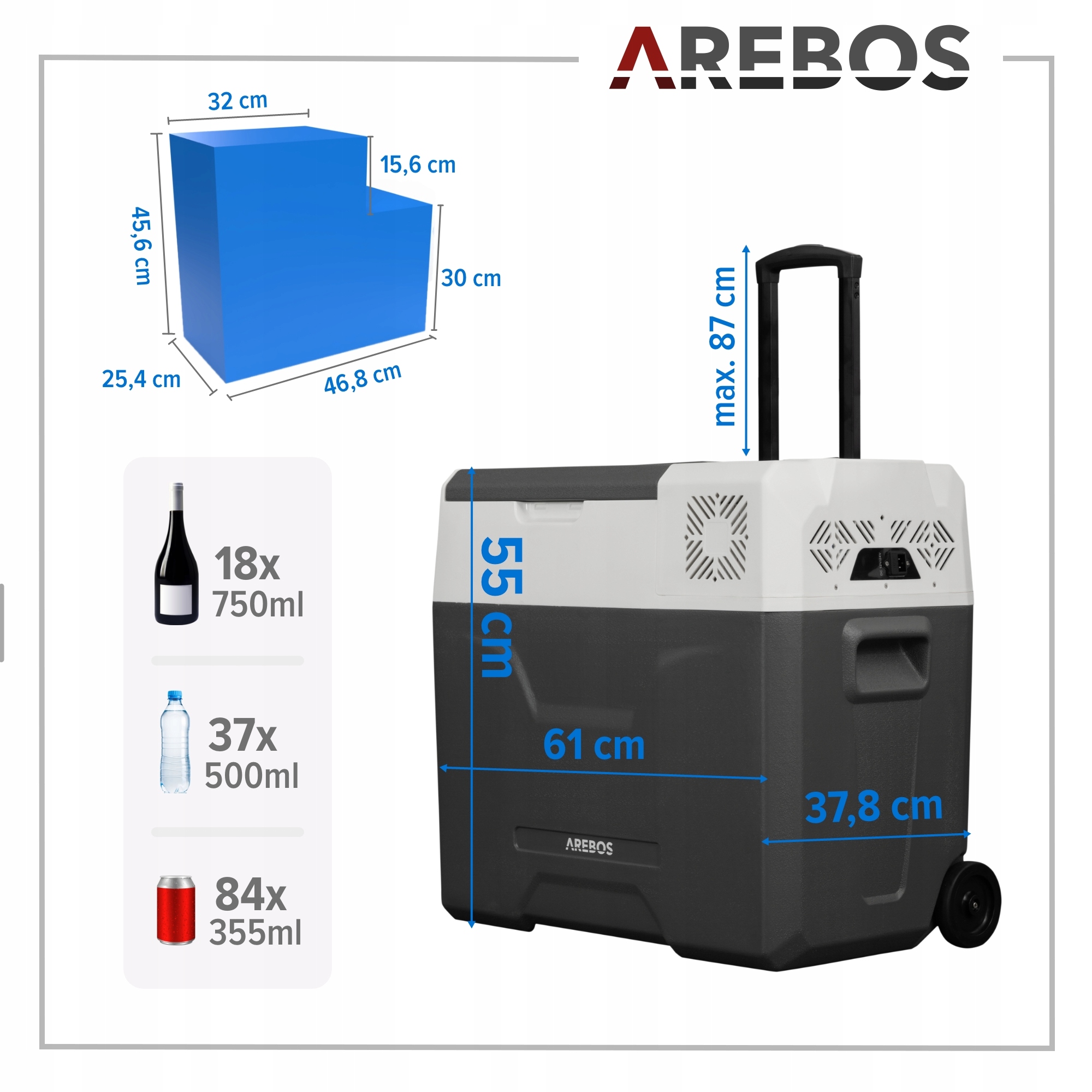 Вы можете охладить напитки или пищу на 18 градусов ниже температуры наружного. Преимущество прохладной коробки Arebos заключается в том, что вам не нужен холодильник при гриле летом, но вы можете держать напитки и еду на холоде в коробке. Это делает ваше свободное время забавным!