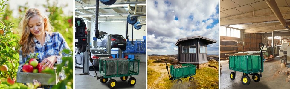 [много -функциональный] Используйте садовую тележку в качестве гандбола для того, чтобы поехать с друзьями или семьей, в качестве транспортной тележки на строительной площадке, в качестве тележки для инструментов в саду или в качестве трейлера для газонного трактора.