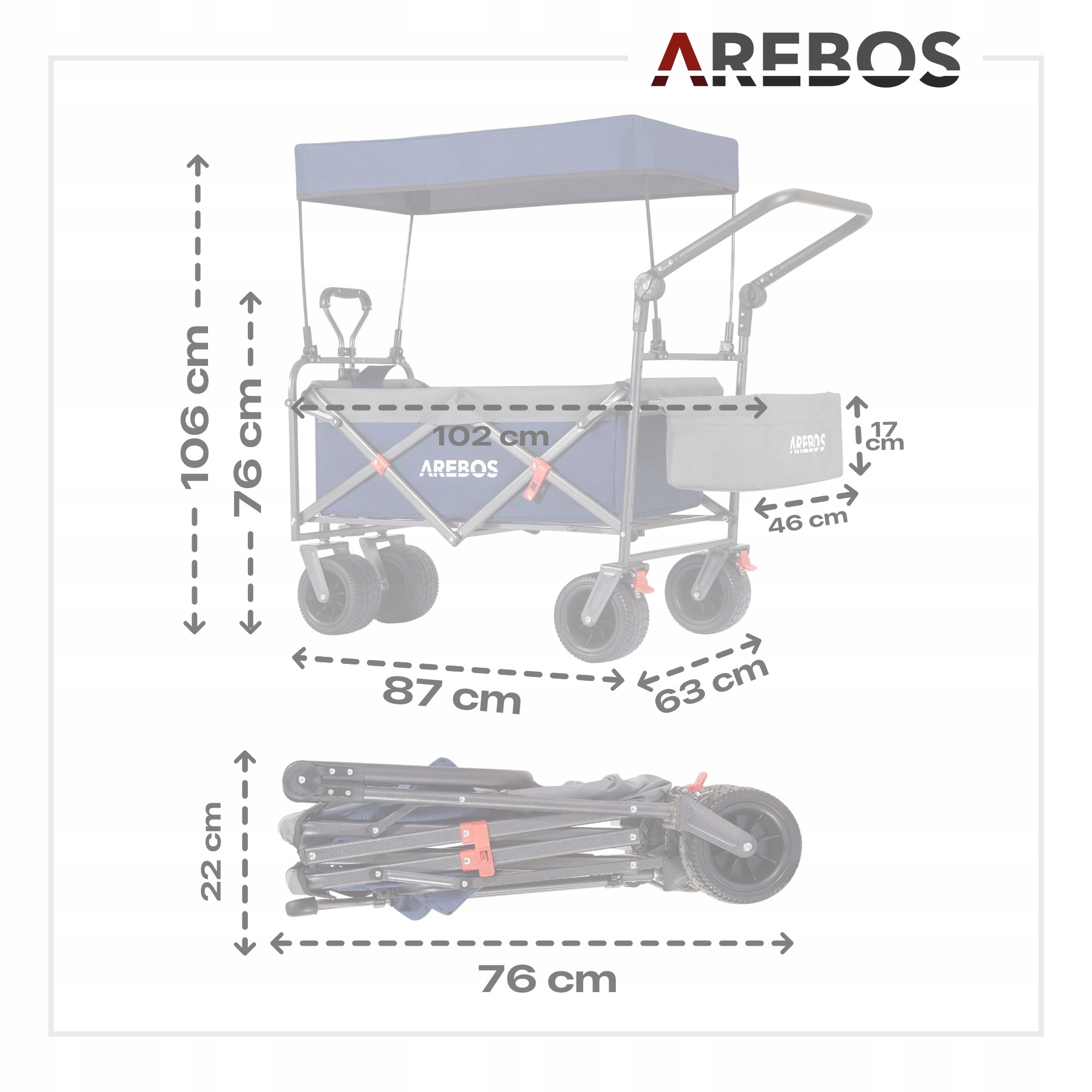 [Комфорт и функциональность] Ручная тележка Arebos изготовлена из твердого абразивного нейлона 600D Oxford и обеспечивает защиту от прямых солнечных лучей, дождя и грязи. Все части ткани удаляются и могут быть промыты, что упрощает очистку и уход за коляской и способствует долговечности продукта.