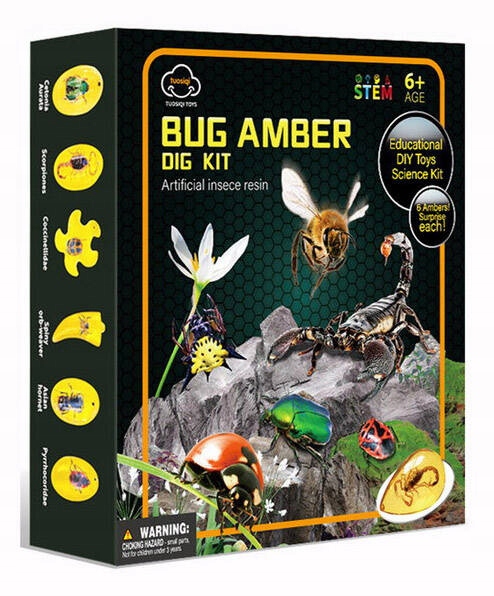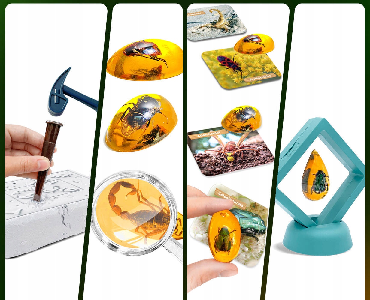 - Янтарь + окаменелости насекомых + аксессуары для маленького археолога