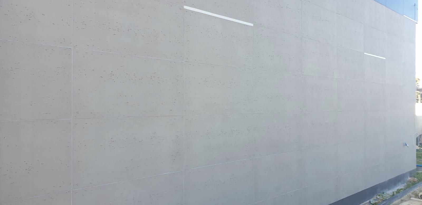 Этот материал – акриловые бетонные панели – идеальная имитация архитектурного бетона. Они практически идеально отражают и его структуру, и цвет.