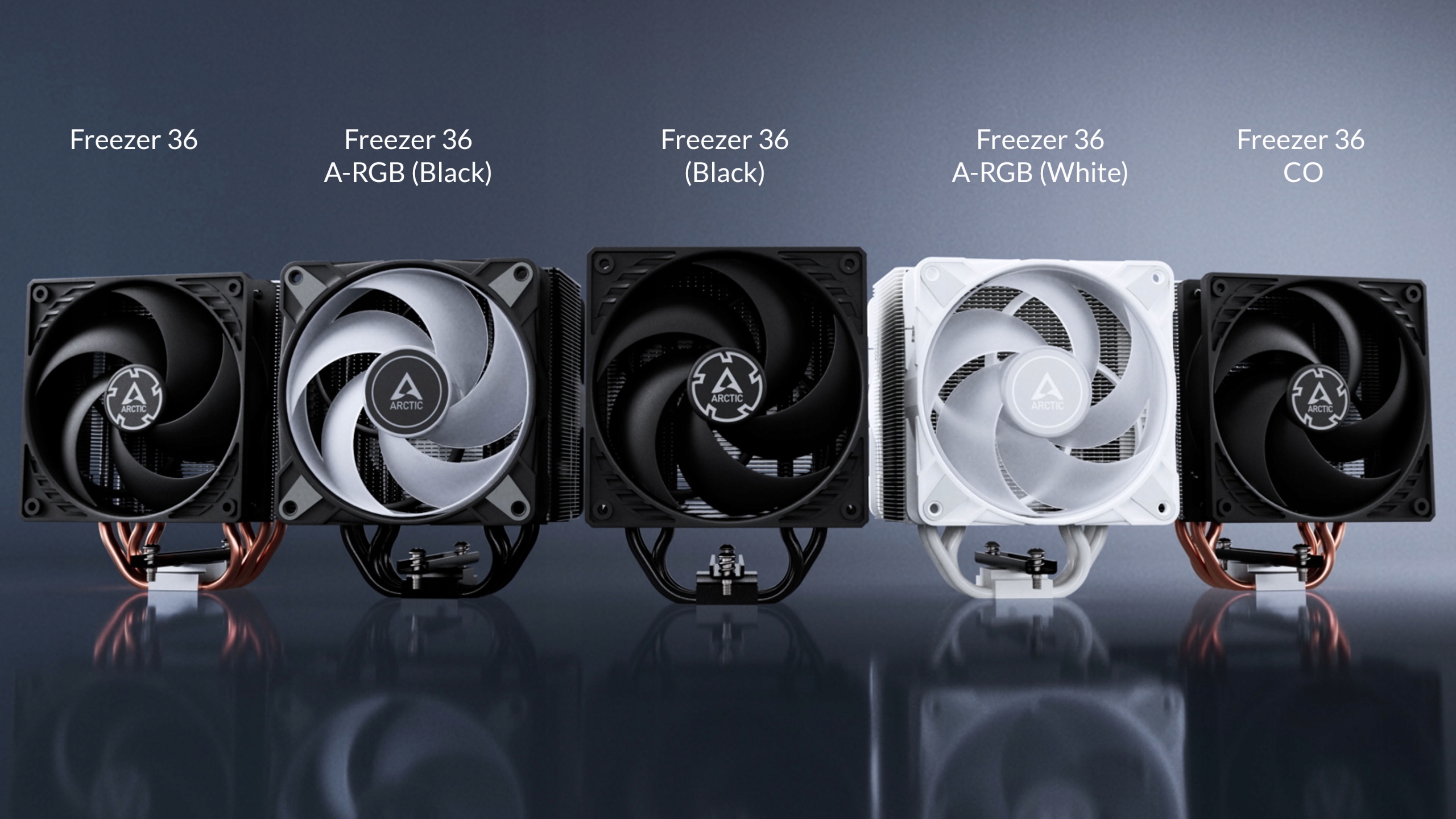морозильник 36 доступен в пяти разных версиях, каждая из которых оснащена двумя вентиляторами в конфигурации Push. В дополнение к стандартной модели с алюминиевым радиатором, также доступна версия с черным радиатором. Версия CO также доступна для непрерывной работы, которая оснащена вентиляторами с двойными шариковыми подшипниками. В качестве альтернативы пользователи могут выбирать между черно-белыми версиями с поклонниками A-RGB.