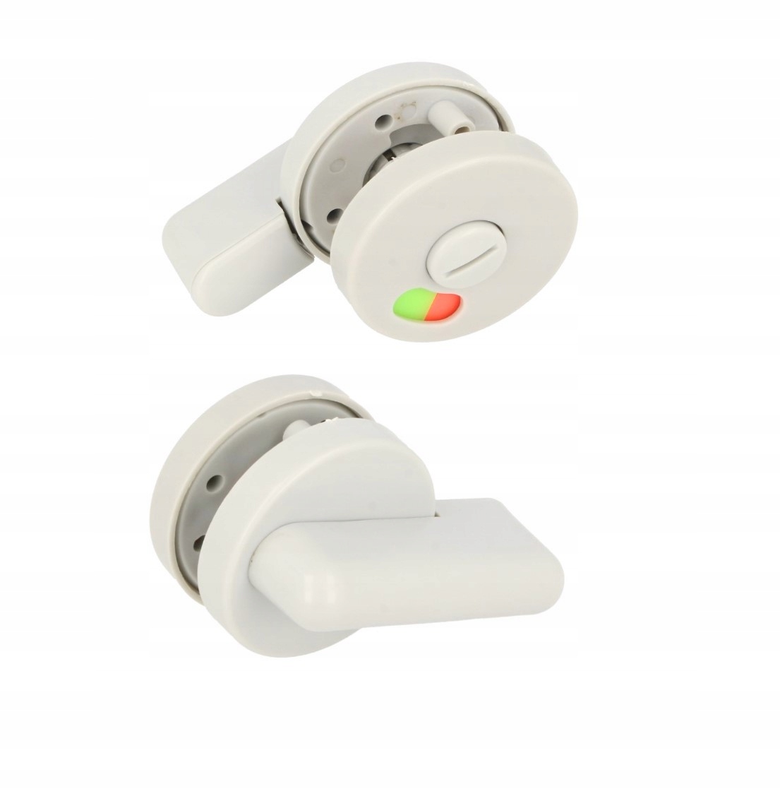 Замок/замок дверной (1 шт) из полипропилена с металлическим штифтом. На замке имеется маркер, информирующий о занятости: красный - кабина занята, зеленый - кабина свободна. Возможность экстренного открытия замка снаружи. Универсальная конструкция замка позволяет использовать его как для правых, так и для левых врезных дверей.