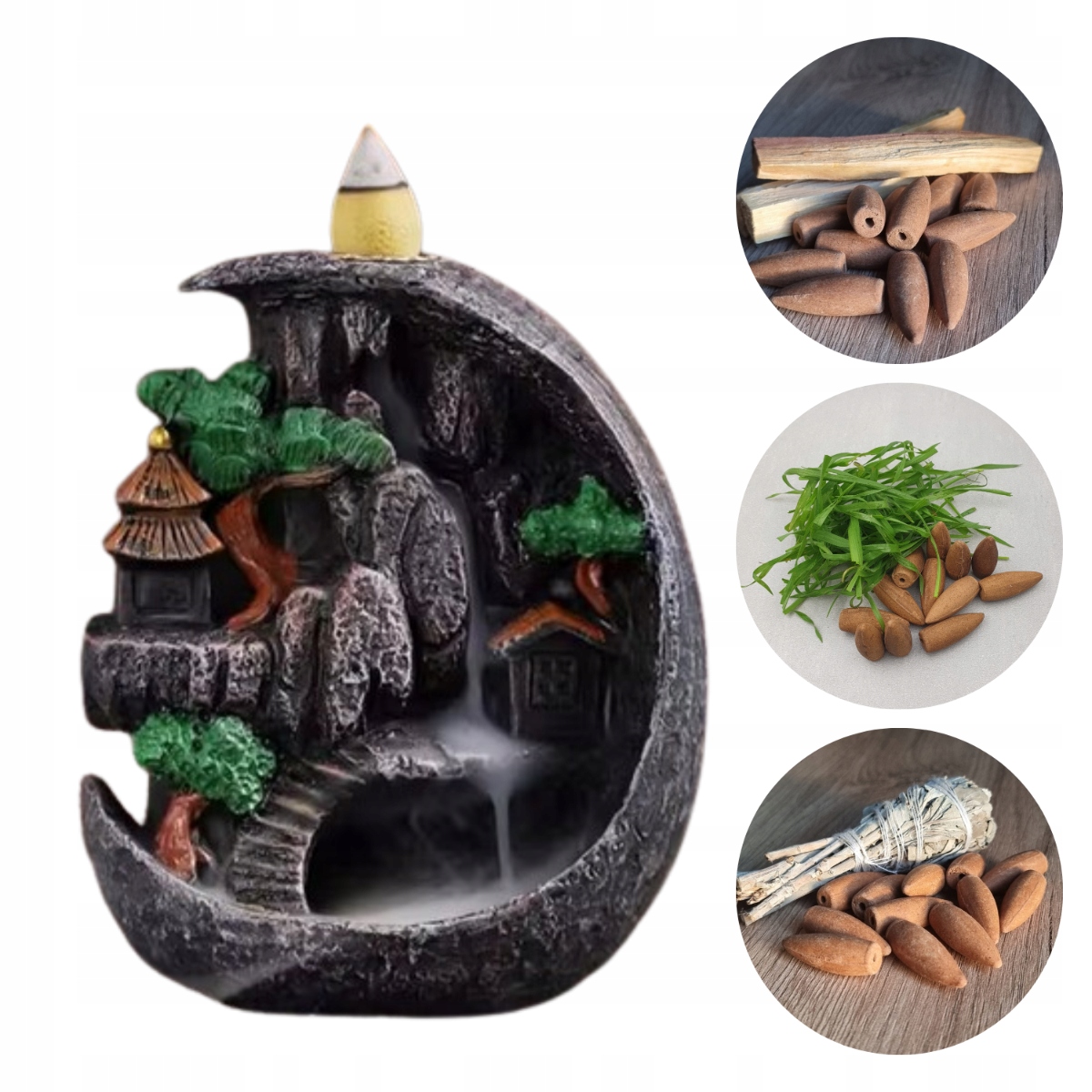 Ароматы обратного потока были специально разработаны, так что дым благовония течет по контейнеру в нижней части камина.