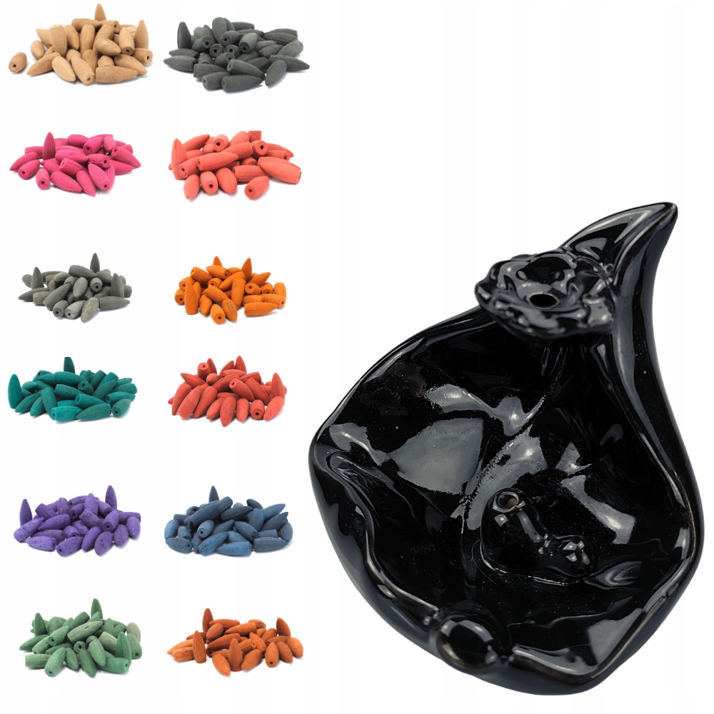 Ароматические палочки в форме конусов изготовлены из натуральных трав, масел и смол. Эти конусы следует использовать со специальными каминами с обратным потоком. Структура конуса позволяет дыму стекать по камину водным каскадом.