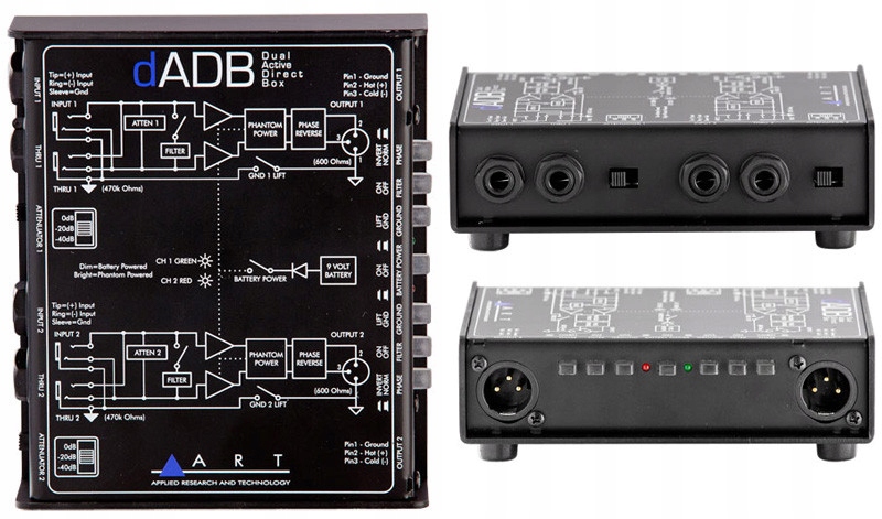 под названием DADB, Active Di-Box скрыт, предлагая два независимых, высококачественных, активных интерфейсов. Современная, очень тихая электроника делает симметризированный выходной сигнал содержит минимальный уровень шума. Это устройство обеспечивает чрезвычайно плоскую и широкую трансферную полосу, которая делает его очень универсальным устройством. Каждый из каналов был предоставлен 1/4 "входного ввода с высоким импедансом прямого вывода 1/4" разъема и симметричного выхода XLR. , -20, -40 дБ), разъединение массы и изменение фазы, и прикрепленный фильтр Bessela нижних пассов /p>