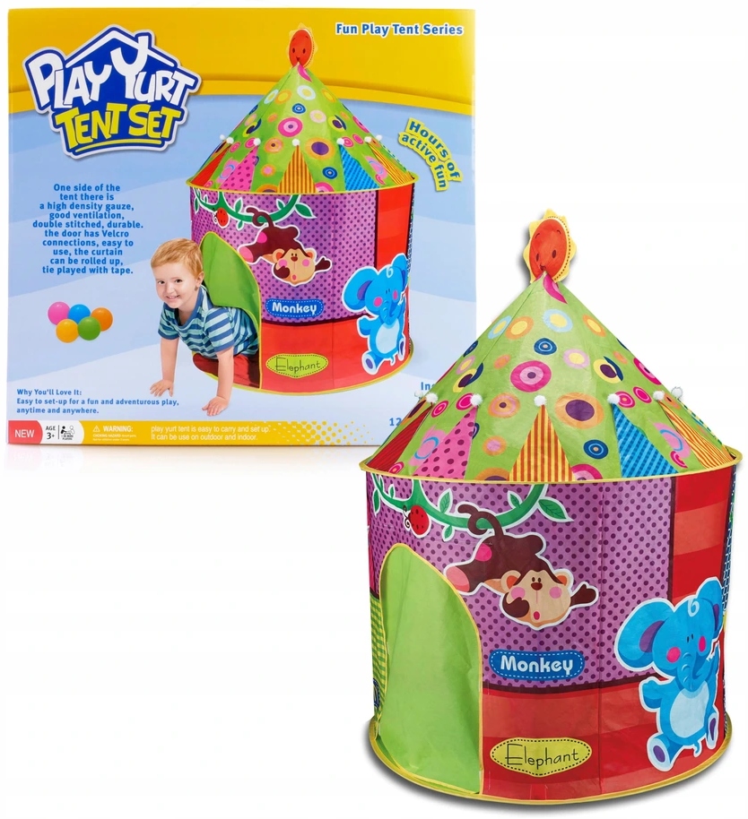 Яркая цвета и веселые животные на стенах палатки заставят малышей не захотеть покидать ее.