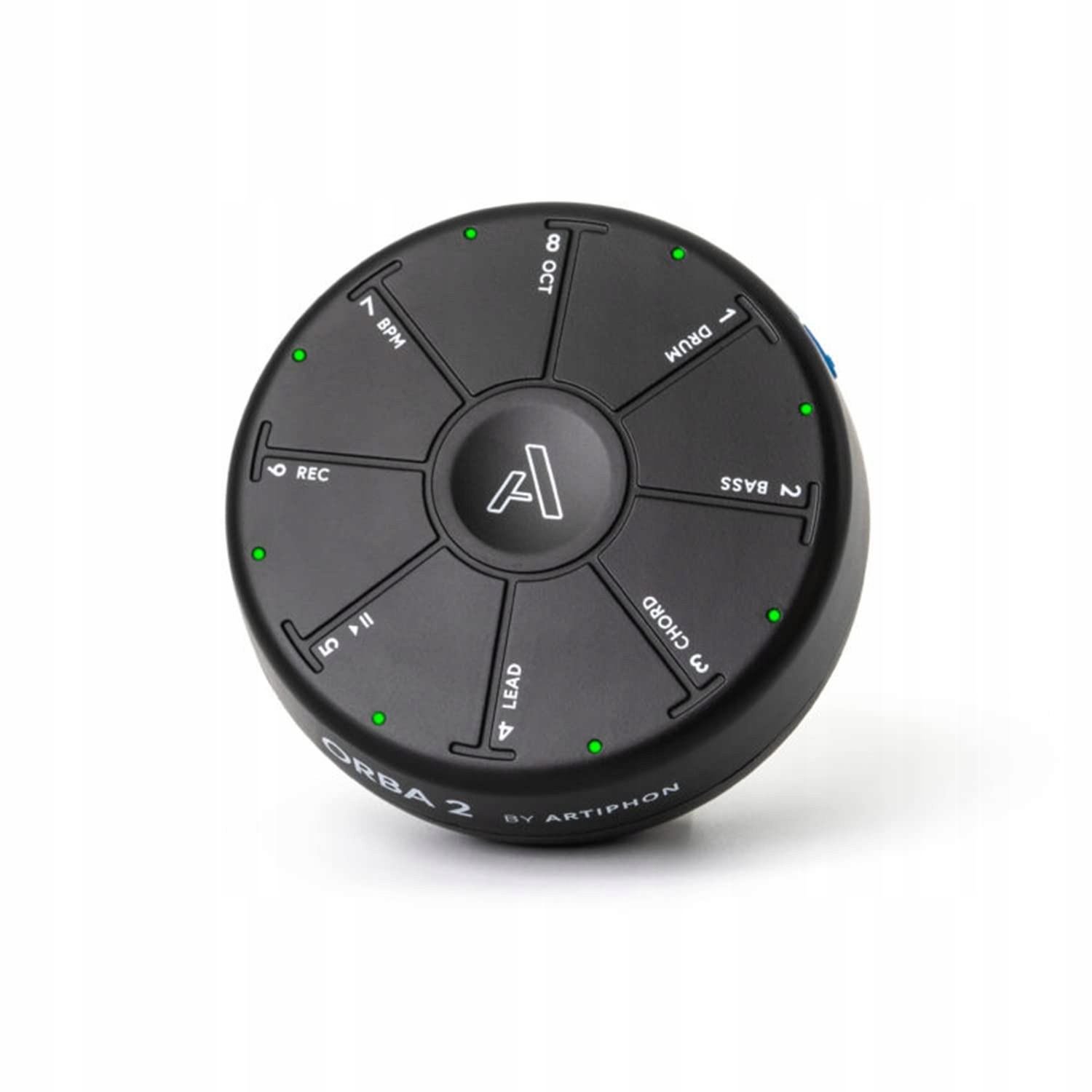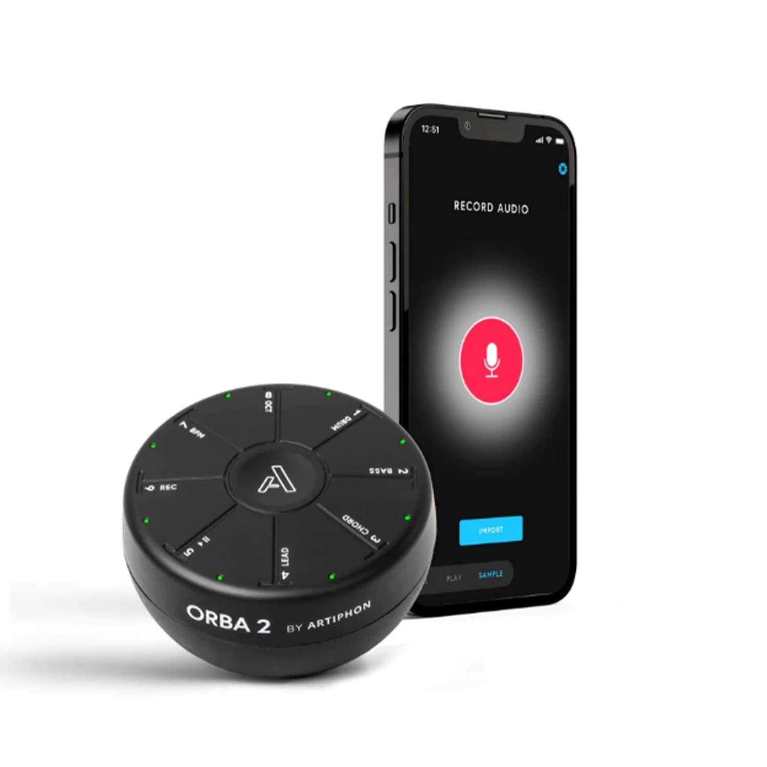 Портативный синтезатор Artiphon 53-90010 Orba 2, сэмплер, лупер и MIDI-контроллер (8 тачпадов, датчики движения и положения, лупер, новинка: 2 ГБ семплового механизма, функция квантования, до 128 тактов)