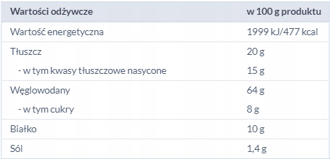 Состав: мука пшеничная, жиры растительные (кокосовый, пальмовый) в переменных пропорциях, сироп глюкозы, сыворотка сухая (молочная), сахар, эмульгатор: лецитин, разрыхлители: Е503, Е500, Е450, соль