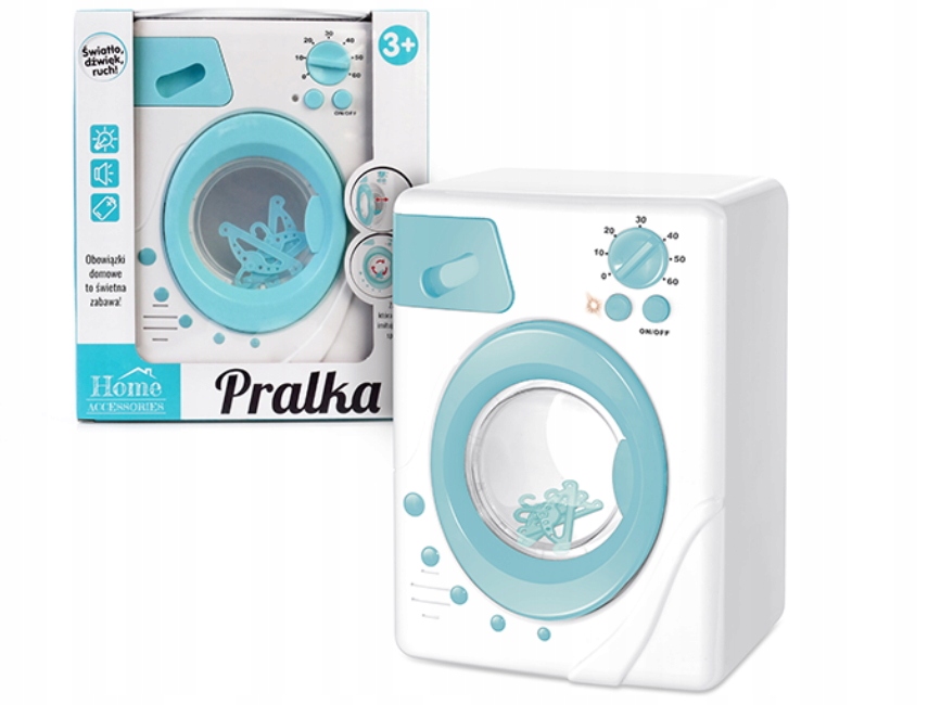 Звуковые эффекты, вращающийся барабан, открывающийся отсек для моющих средств и подвижная ручка установки температуры позволяют ребенок сможет играть роль хозяйки или хозяина дома, доставляя массу удовольствия и радости.
