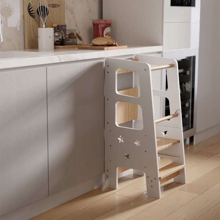Образовательная башня с регулируемой высотой растет с ребенком и адаптируется к каждому этапу роста, обеспечивая годы использования.