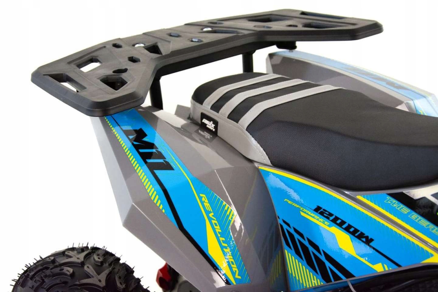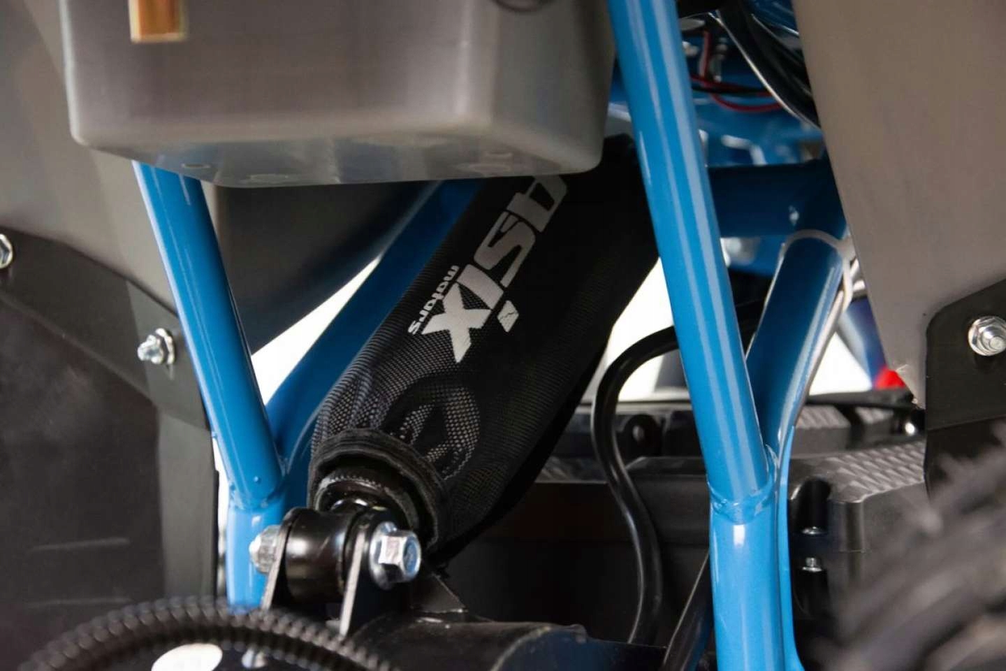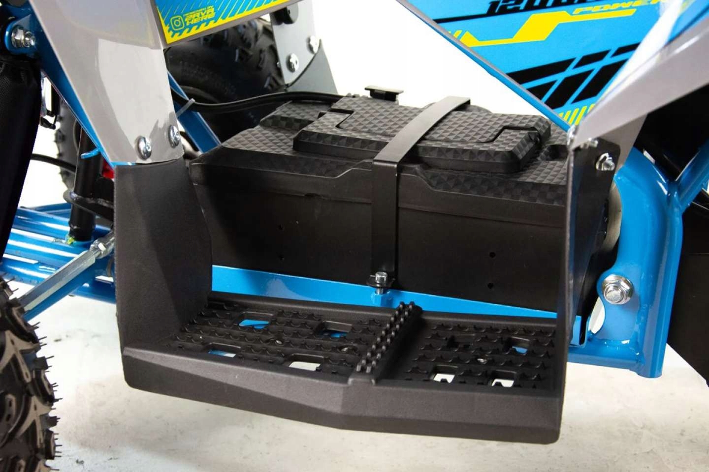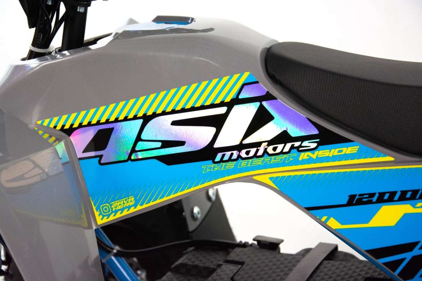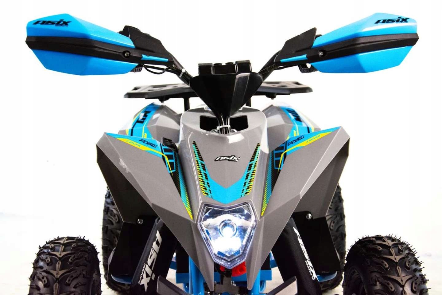 Мини-квадрокоптер ASIX E-M11 — это транспортное средство с бесщеточным электрическим неодимовым двигателем мощностью 1200 Вт. Питается от комплекта аккумуляторов общим напряжением 48В12Ач. Оснащен плавной регулировкой скорости и регулировкой задержки запуска. Данная модель имеет задний ход и предназначена для детей ростом от 120 см. Квадроцикл на больших 6-дюймовых колесах, оснащен передним и задним светодиодным освещением, дистанционным огнетушителем, звуковым сигналом, гидравлическими тормозами, масляными амортизаторами и голографической наклейкой.
