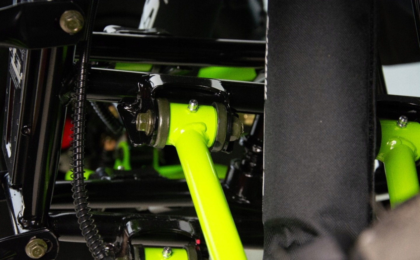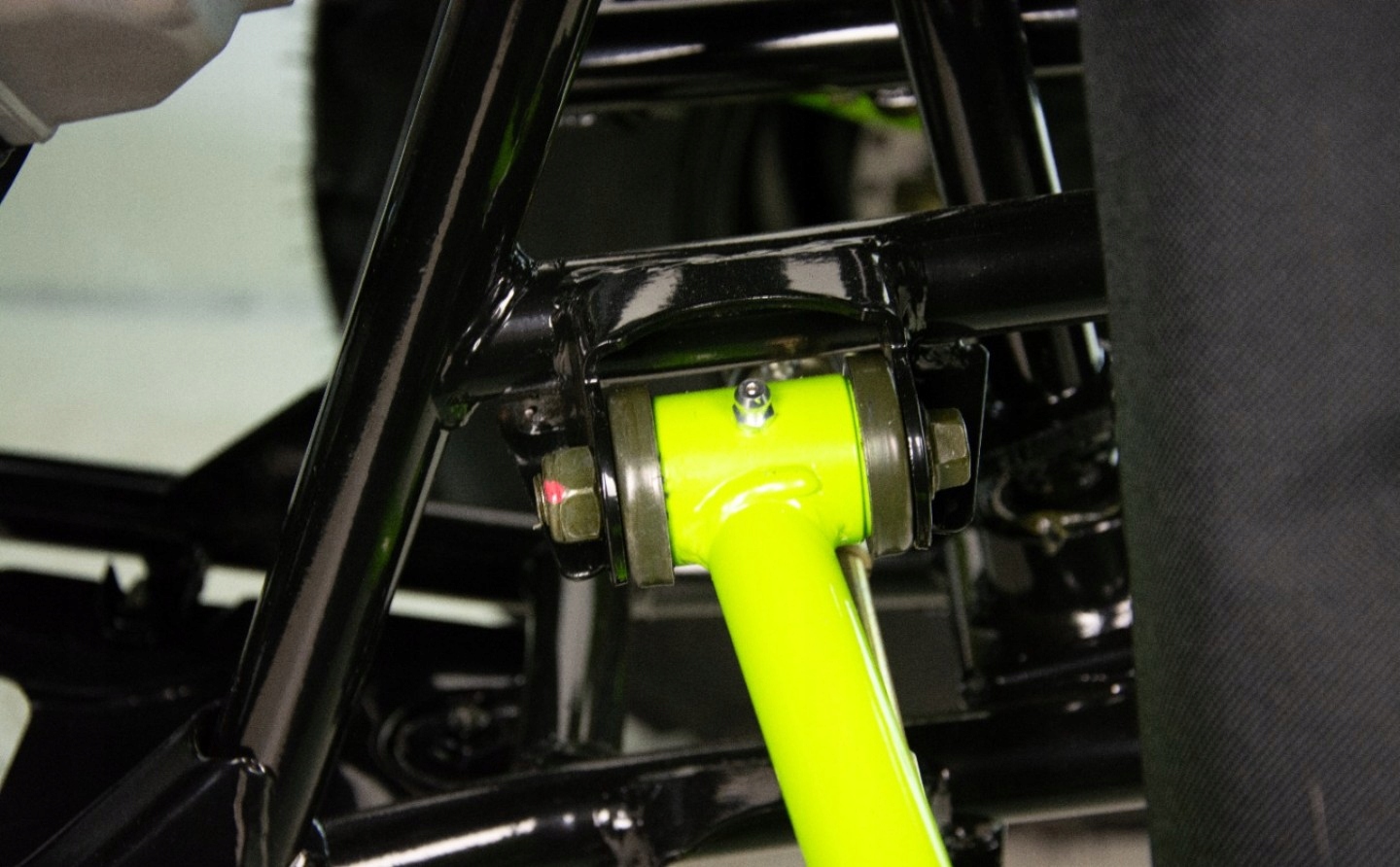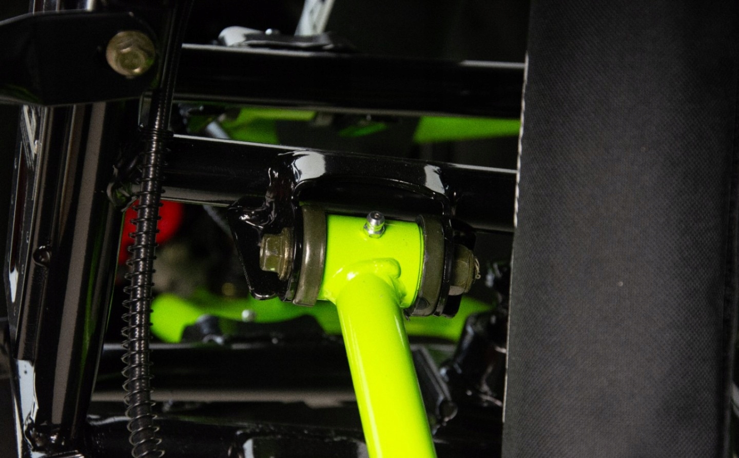 Многословная передняя подвеска на шариковых штифтах, оснащенных регулируемыми амортизаторами масла, обеспечивает полный контроль над транспортным средством. Работа с плавной подвеской, сохраняя адекватную адгезию
