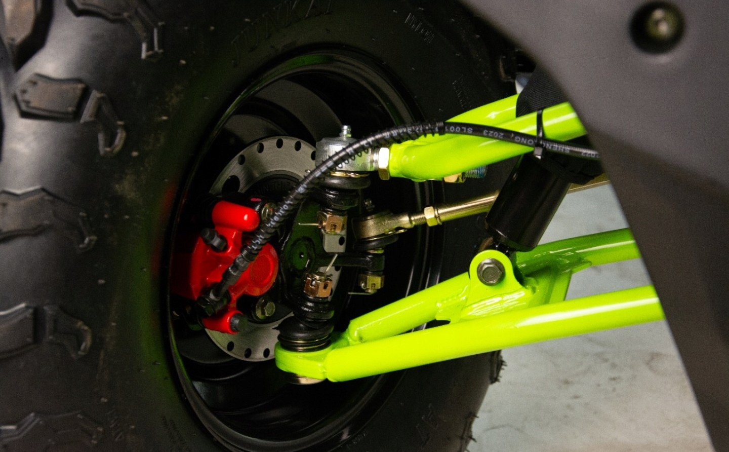 10 -дюймовые стальные диски, оснащенные ездами шины Junaki с агрессивным протектором, обеспечивают адекватную адгезию во всех условиях и придают чувство уверенности. Пластиковые крышки - Beadlocki установлены на колесах