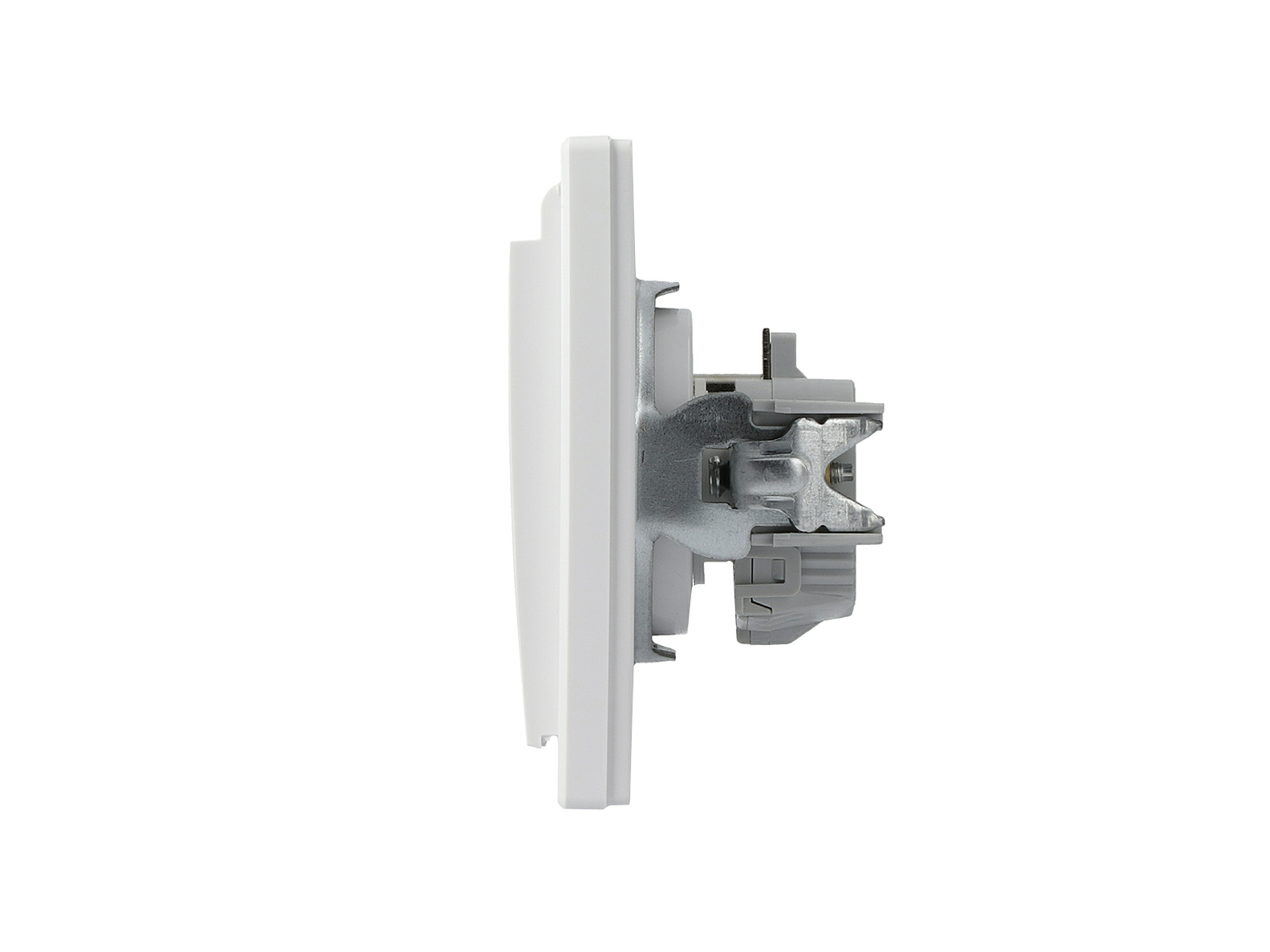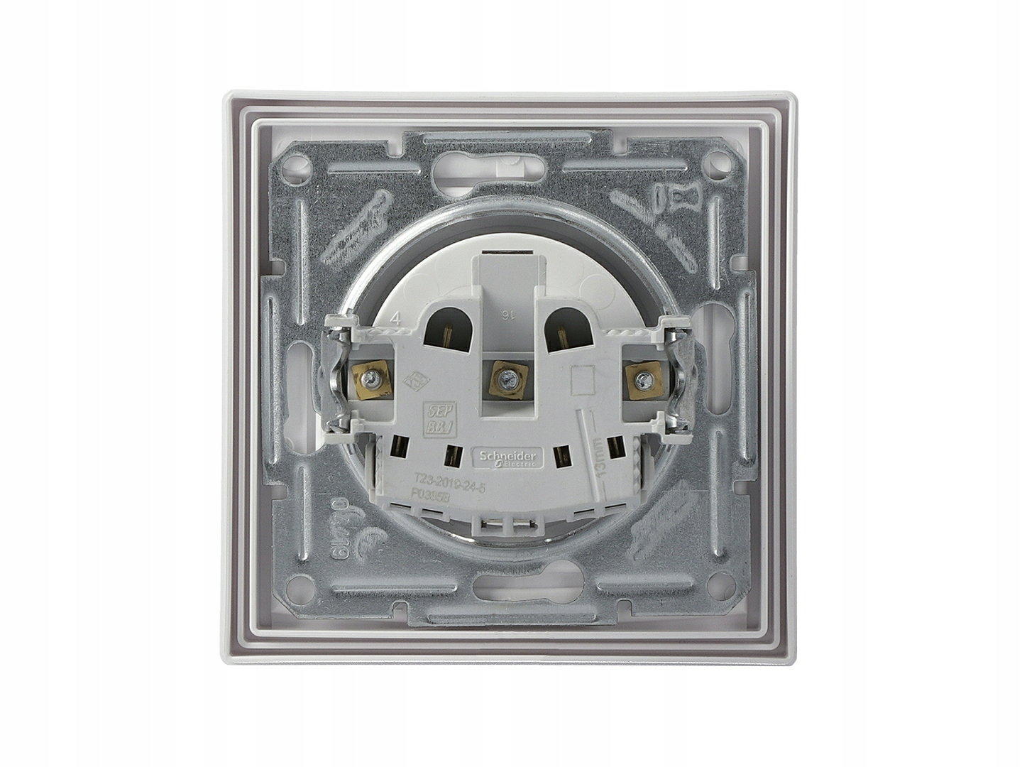 Розетка одинарная с заземлением и белыми токозащитными шторками, серия Asfora, марка Schneider Electric, номер EPH2800321. Повышенная степень защиты механизмов IP44, предназначенных для установки в ванных комнатах и других помещениях с возможным доступом к воде. Длинные и прочные захваты удерживаются в вертикальном положении металлическими направляющими, что облегчает монтаж и повышает безопасность при монтаже механизма в монтажную коробку. Клеммы в розетках четко обозначены и расположены в одну линию, что значительно упрощает укладку подключаемых кабелей перед монтажом розетки в установочную коробку (уменьшая влияние натяжения кабеля). Компактная и прочная конструкция механизма сводит к минимуму риск случайного контакта с элементами под напряжением и предотвращает выпадение элементов даже при полностью выкрученных винтах клемм. Кроме того, прочная монтажная рама из оцинкованного металла имеет выемки для облегчения позиционирования.
