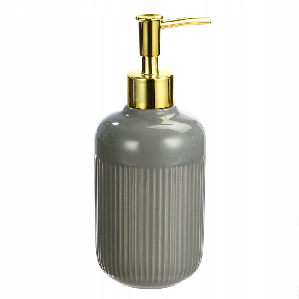 - Качественный керамический дозатор мыла в модном сером+золотом цвете.