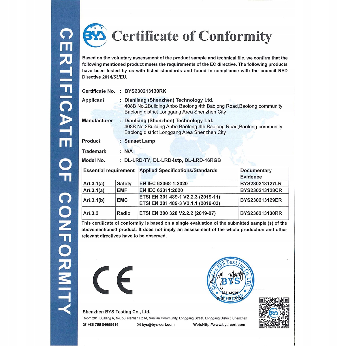 - Сертификаты: CE, ROHS.