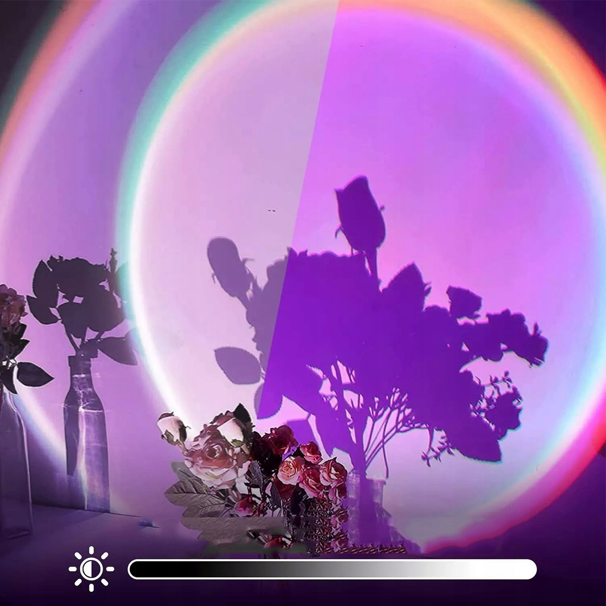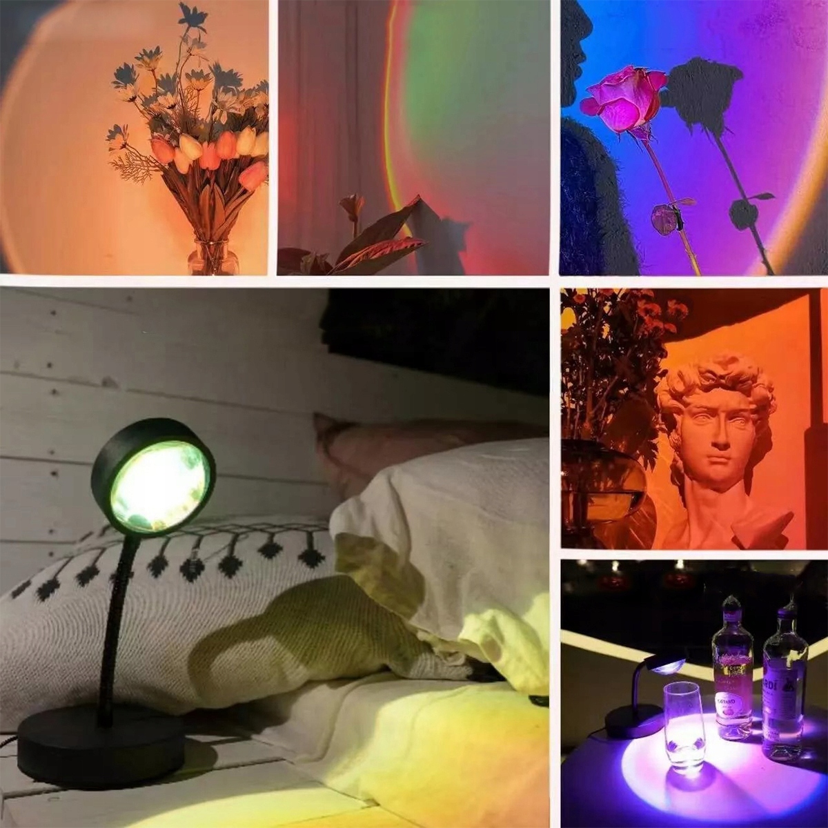 Головка лампы Sunset может вращаться на 360 градусов. Технология Sunset Lamp решает проблему задержки вращения, позволяя свободно регулировать угол проецирования в соответствии с различными потребностями. Универсальный угол позволяет вам получать больше удовольствия, не подвергаясь влиянию угла. Подходит для использования в помещении и на открытом воздухе.