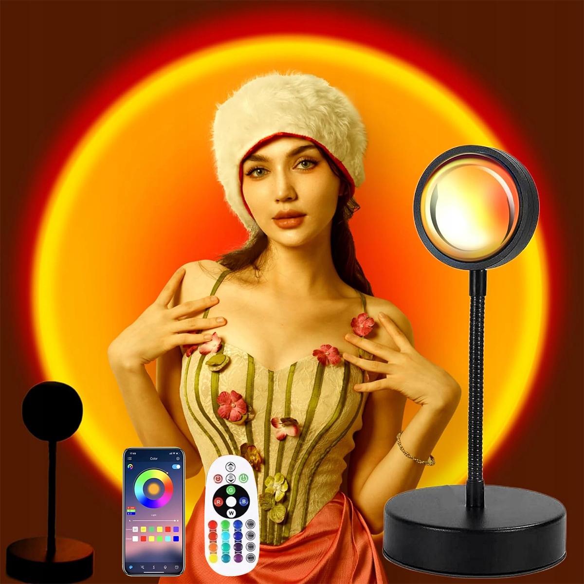 Лампа Sunset имеет двойное управление с помощью пульта дистанционного управления и приложения, что позволяет регулировать эффект и яркость светодиодной лампы через приложение или пульт дистанционного управления. Это делает фото и видео более приятным.