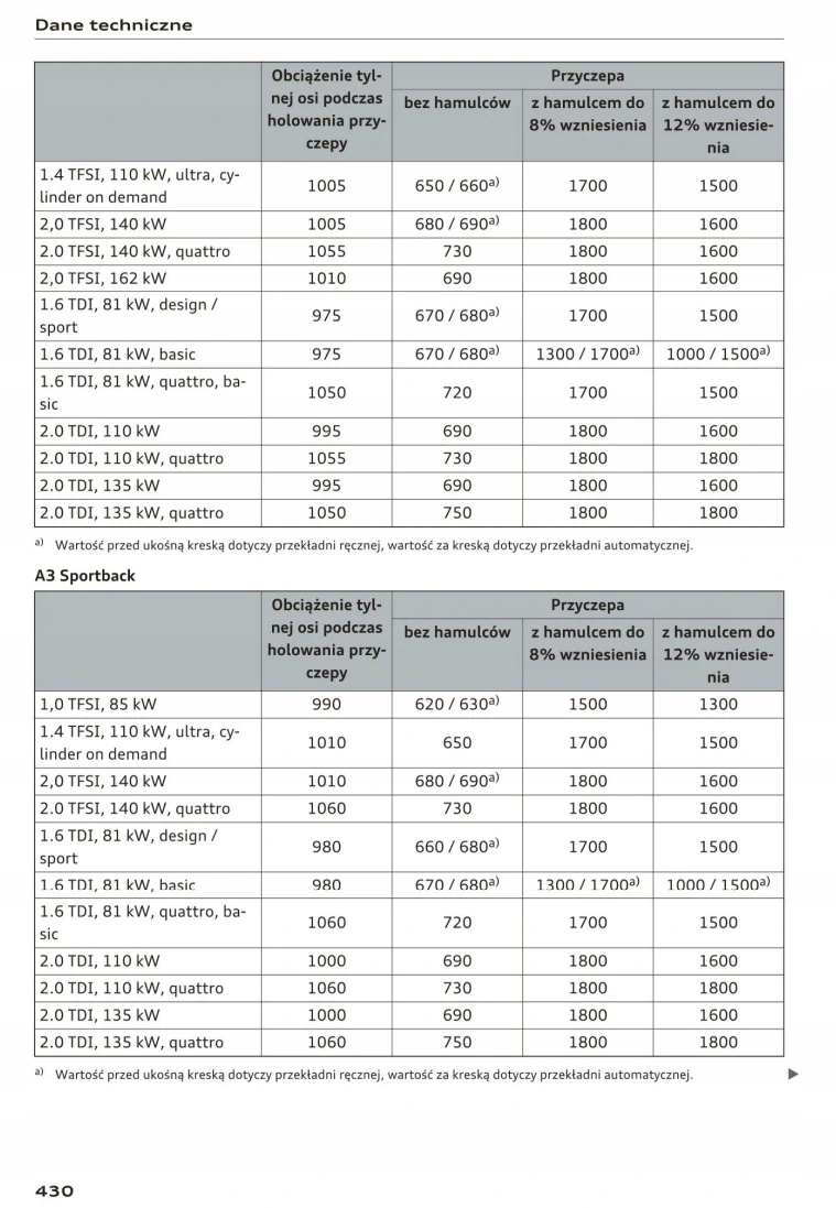 Руководство для владельца Audi содержит все версии оборудования и полезную информацию о том, как эффективно и безопасно использовать автомобиль, например: - указатели поворота, контрольные лампы, открывание и закрывание - освещение и обзорность, сиденья, отсеки для хранения вещей, отопление, вентиляция, кондиционирование воздуха. - советы по вождению, эксплуатации, обслуживанию автомобиля - уровни жидкостей, проверка и доливка, аварийные операции, замена колес, предохранителей, замена лампочек - технические данные... и многое другое, что дает путешественникам ощущение безопасности и комфорта.Польское законодательство обязывает продавца приложить к . Руководство пользователя автомобиля новое, на польском языке.