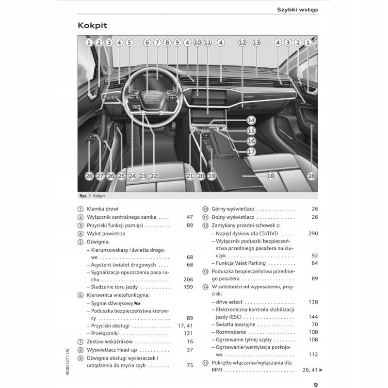 Руководство для владельца Audi содержит все версии оборудования и полезную информацию о том, как эффективно и безопасно использовать автомобиль, например: - указатели поворота, контрольные лампы, открывание и закрывание - освещение и обзорность, сиденья, отсеки для хранения вещей, отопление, вентиляция, кондиционирование воздуха. - советы по вождению, эксплуатации, обслуживанию автомобиля - уровни жидкостей, проверка и доливка, аварийные операции, замена колес, предохранителей, замена лампочек - технические данные... и многое другое, что дает путешественникам ощущение безопасности и комфорта.Польское законодательство обязывает продавца приложить к . Руководство пользователя автомобиля новое, на польском языке.