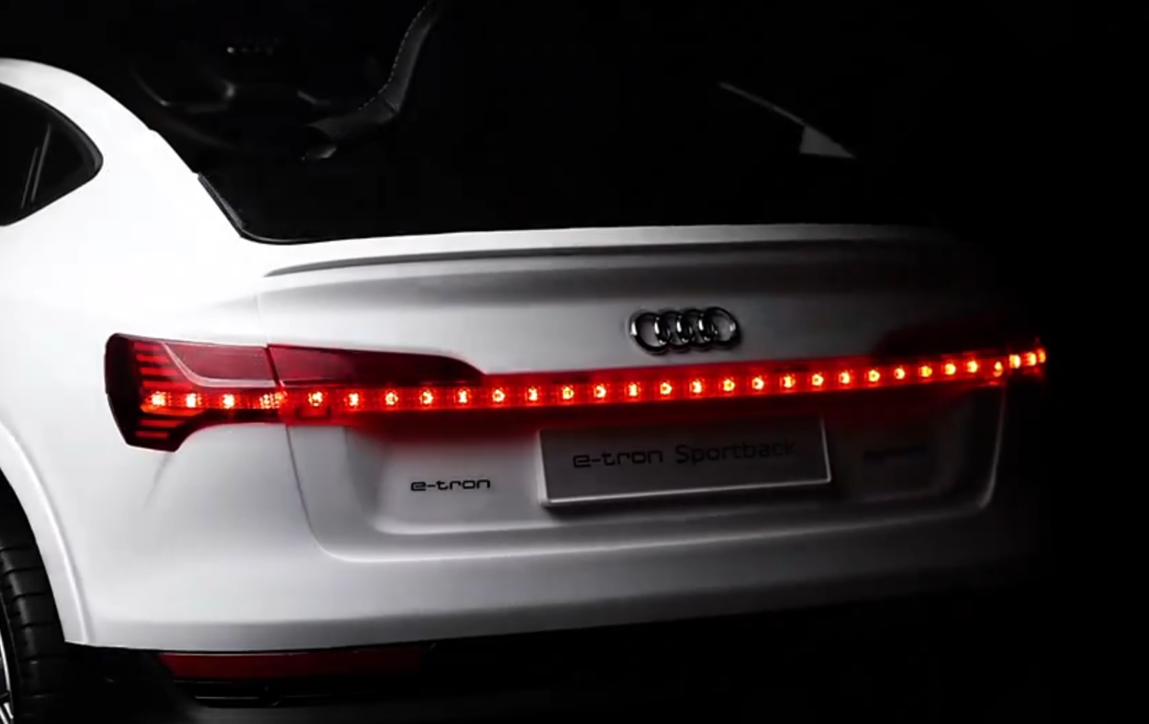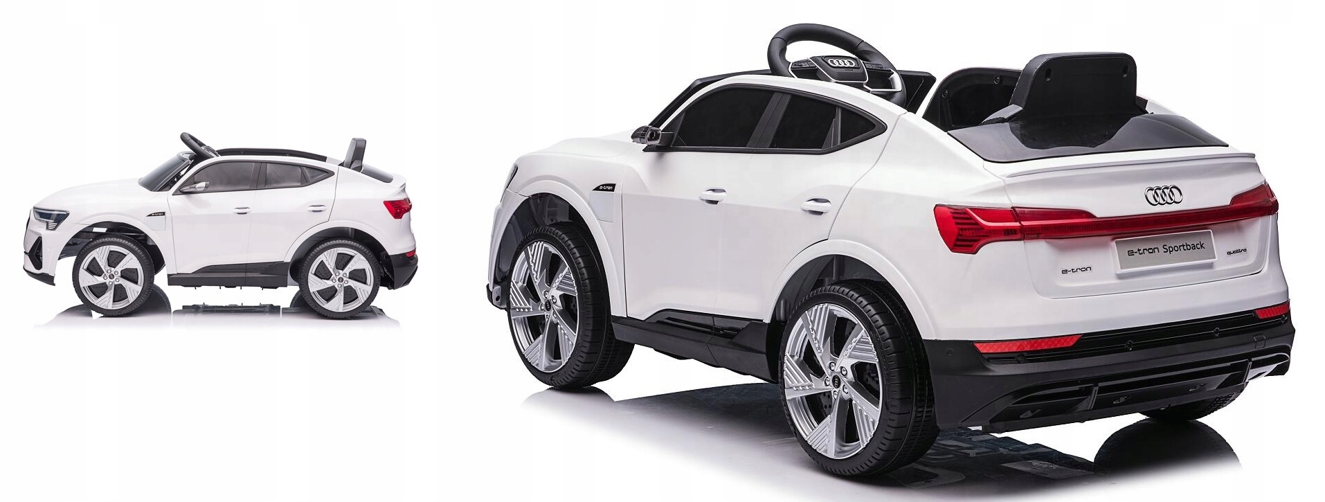 Автомобиль Audi E-tron Sportback S-line — это автомобиль с аккумуляторной батареей, на который распространяется ЛИЦЕНЗИЯ Audi. В автомобиле имеются двери, которые открываются в обе стороны. Он приводится в движение ЧЕТЫРЕМИ мощными электродвигателями, питаемыми от аккумулятора напряжением 12 В. Автомобиль оснащен звуковыми эффектами, активируемыми кнопками, входом для MP3-плеера, портом USB, портом TF, регулятором громкости, светодиодными фонарями, мягким сиденьем из эко-кожи и колесами из пены EVA. Доступны 3 скорости движения. Безопасные уроки вождения проводятся с помощью прилагаемого пульта дистанционного управления 2,4G, который дает родителю полный контроль над автомобилем.