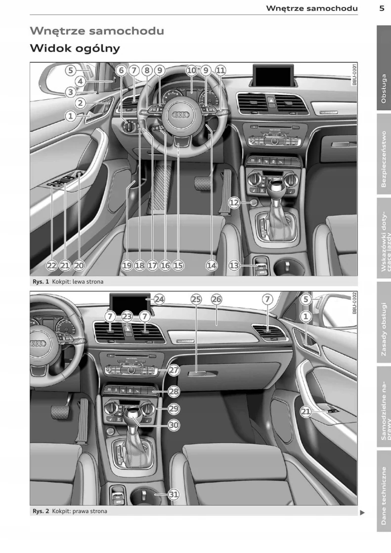 Руководство для владельца Audi содержит все версии оборудования и полезную информацию о том, как эффективно и безопасно использовать автомобиль, например: - указатели поворота, контрольные лампы, открывание и закрывание - освещение и обзорность, сиденья, отсеки для хранения вещей, отопление, вентиляция, кондиционирование воздуха. - советы по вождению, эксплуатации, обслуживанию автомобиля - уровни жидкостей, проверка и доливка, аварийные операции, замена колес, предохранителей, замена лампочек - технические данные... и многое другое, что дает путешественникам ощущение безопасности и комфорта.Польское законодательство обязывает продавца приложить к . Руководство пользователя автомобиля новое, на польском языке.