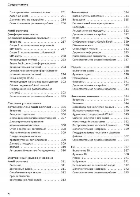 Руководство для владельца Audi содержит все версии оборудования и полезную информацию о том, как эффективно и безопасно использовать автомобиль, например: - указатели поворота, контрольные лампы, открывание и закрывание - освещение и обзорность, сиденья, отсеки для хранения вещей, отопление, вентиляция, кондиционирование воздуха. - советы по вождению, эксплуатации, обслуживанию автомобиля - уровни жидкостей, проверка и доливка, аварийные операции, замена колес, предохранителей, замена лампочек - технические данные... и многое другое, что дает путешественникам ощущение безопасности и комфорта.Польское законодательство обязывает продавца приложить к . Руководство пользователя автомобиля новое, на польском языке.