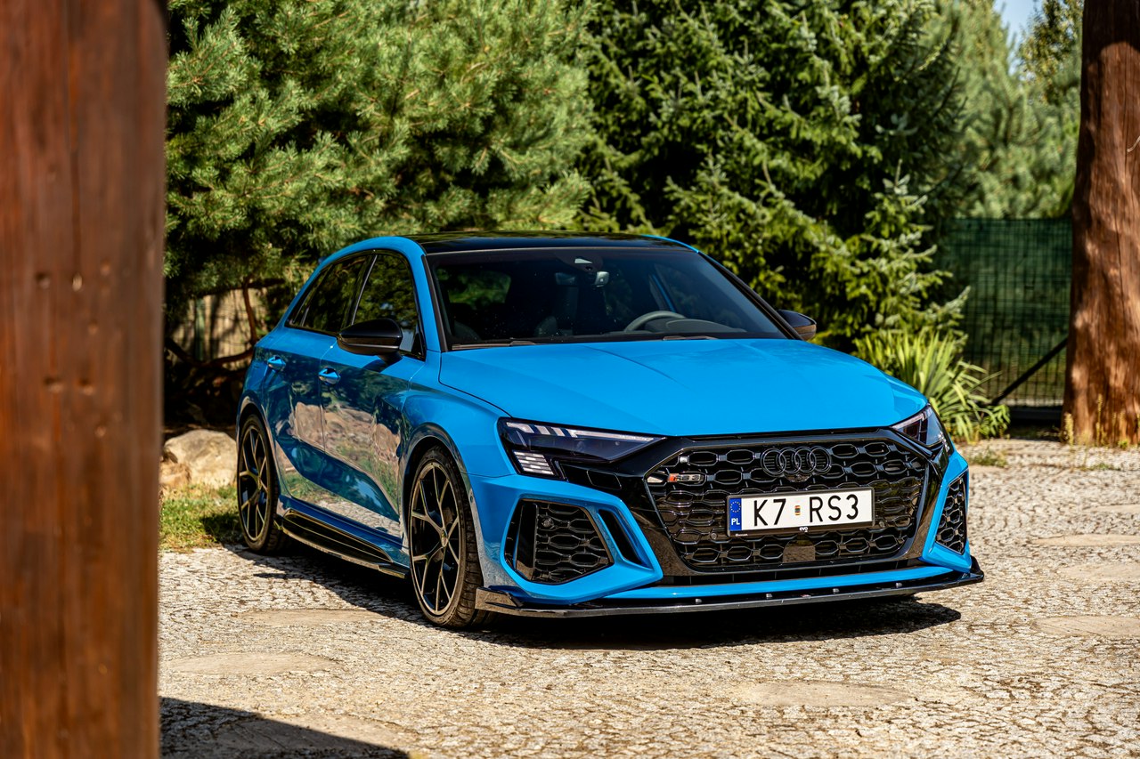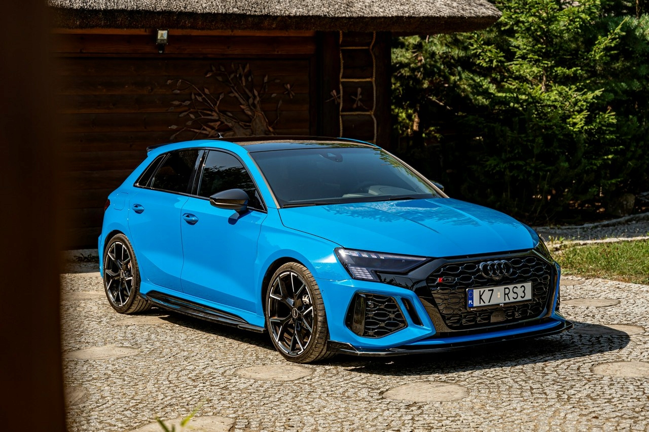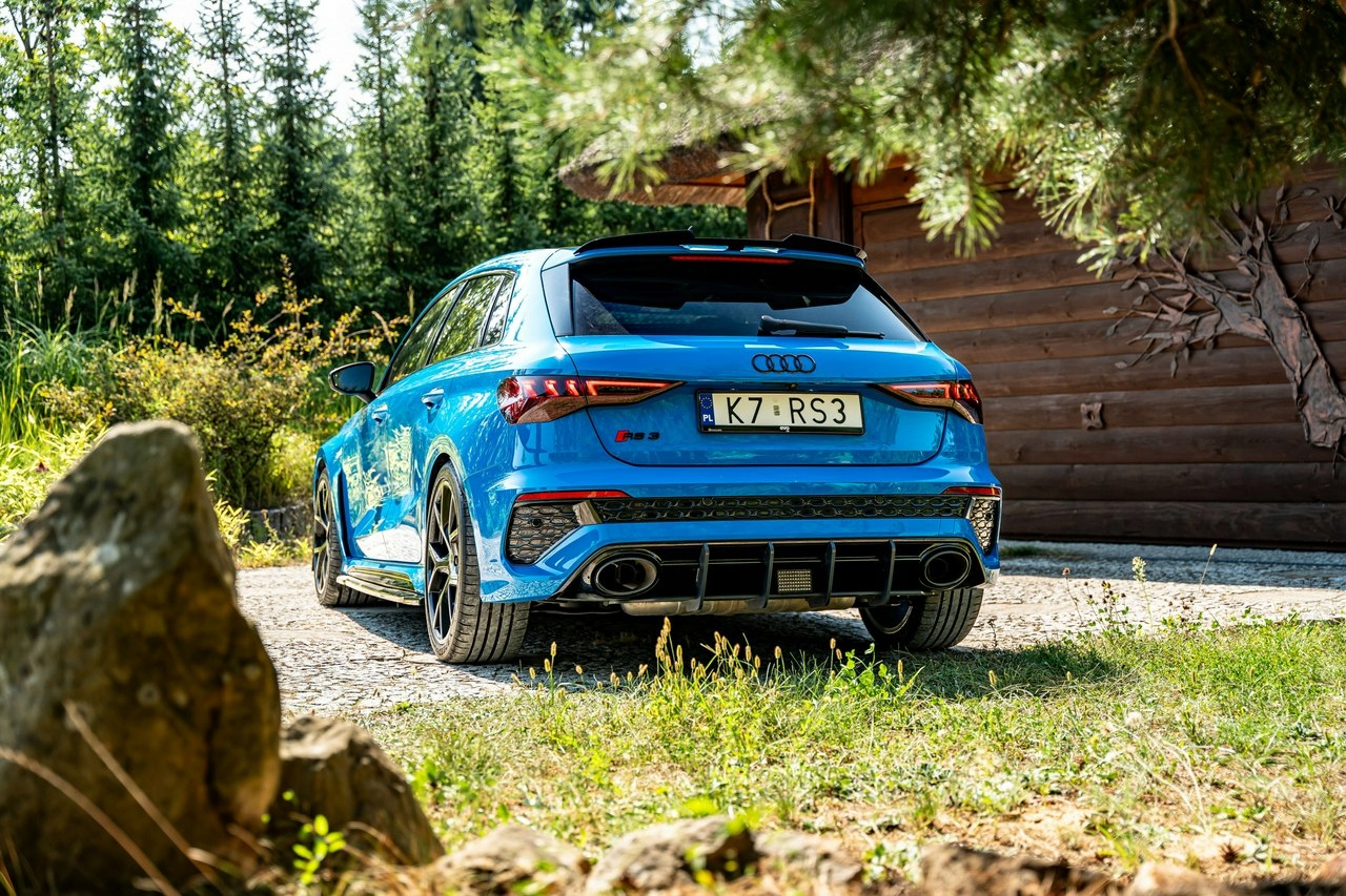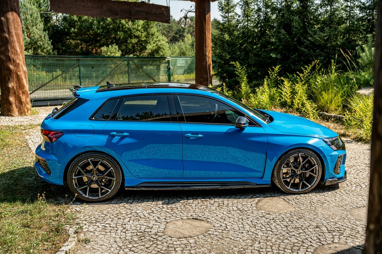 audi rs3 8y - компактный спортивный автомобиль, который сочетает в себе мощность с повседневной утилитой. Синий лак для тела дает ему характер, а Maxton Design подчеркивает агрессивный внешний вид. RS3 оснащен мощным двигателем TFSI 2,5, который обеспечивает впечатляющие характеристики. Интерьер спортивный и хорошо оборудованный, предлагающий комфорт и современные технологии. Это идеальный выбор для людей, которые ищут быстрый и стильный автомобиль.