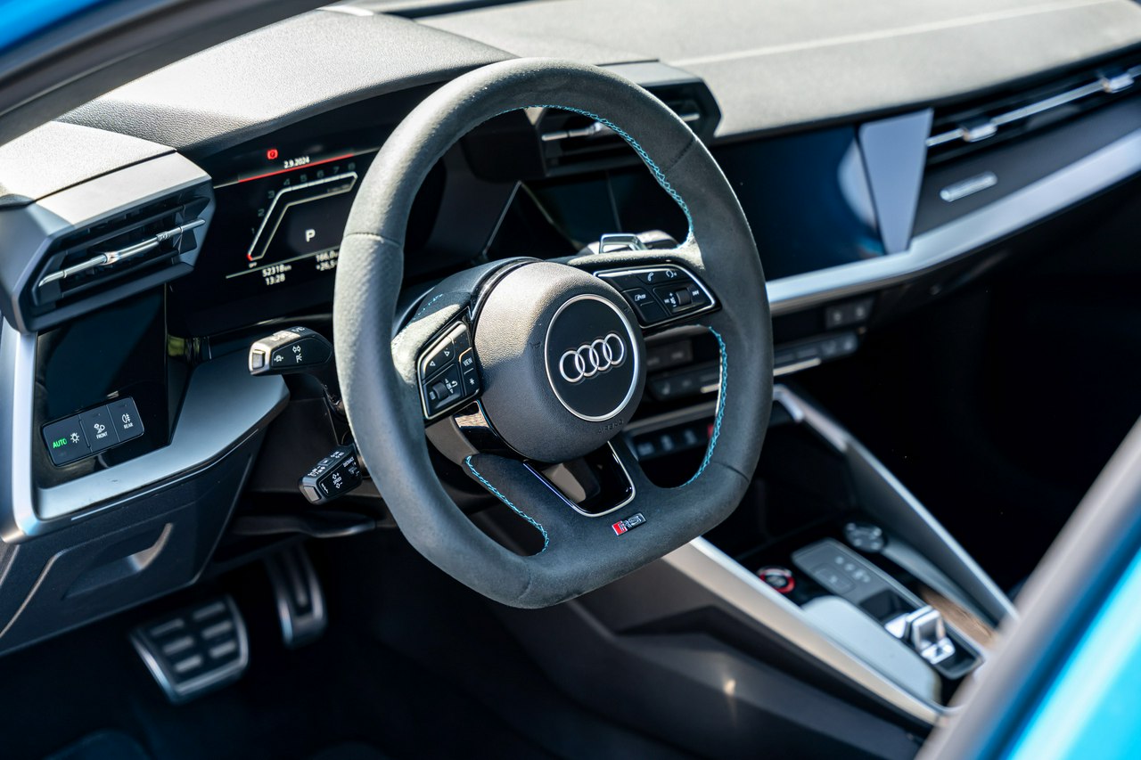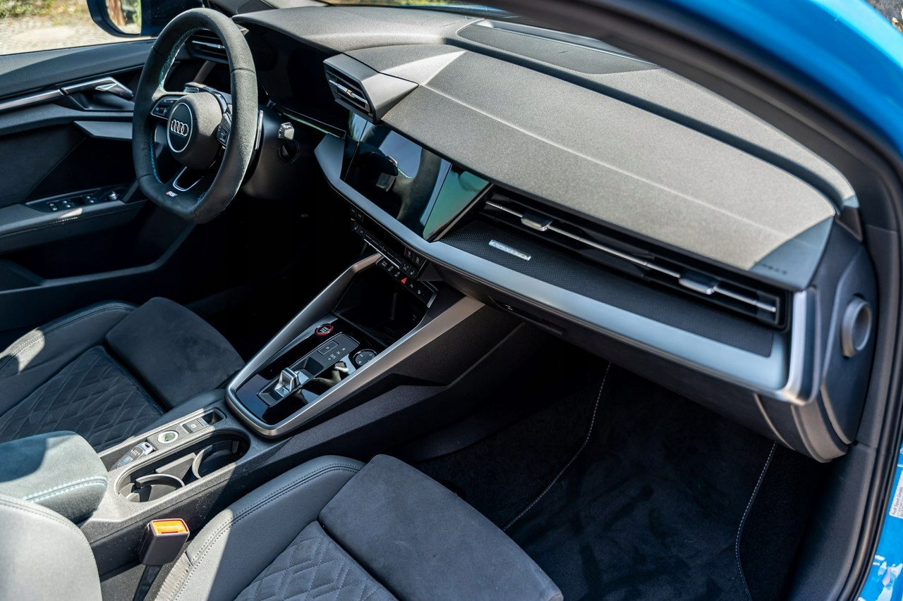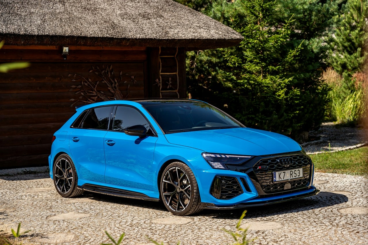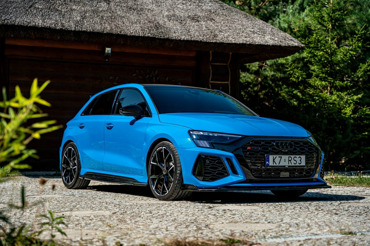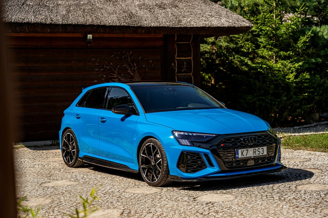 audi rs3 8y - компактный спортивный автомобиль, который сочетает в себе мощность с повседневной утилитой. Синий лак для тела дает ему характер, а Maxton Design подчеркивает агрессивный внешний вид. RS3 оснащен мощным двигателем TFSI 2,5, который обеспечивает впечатляющие характеристики. Интерьер спортивный и хорошо оборудованный, предлагающий комфорт и современные технологии. Это идеальный выбор для людей, которые ищут быстрый и стильный автомобиль.