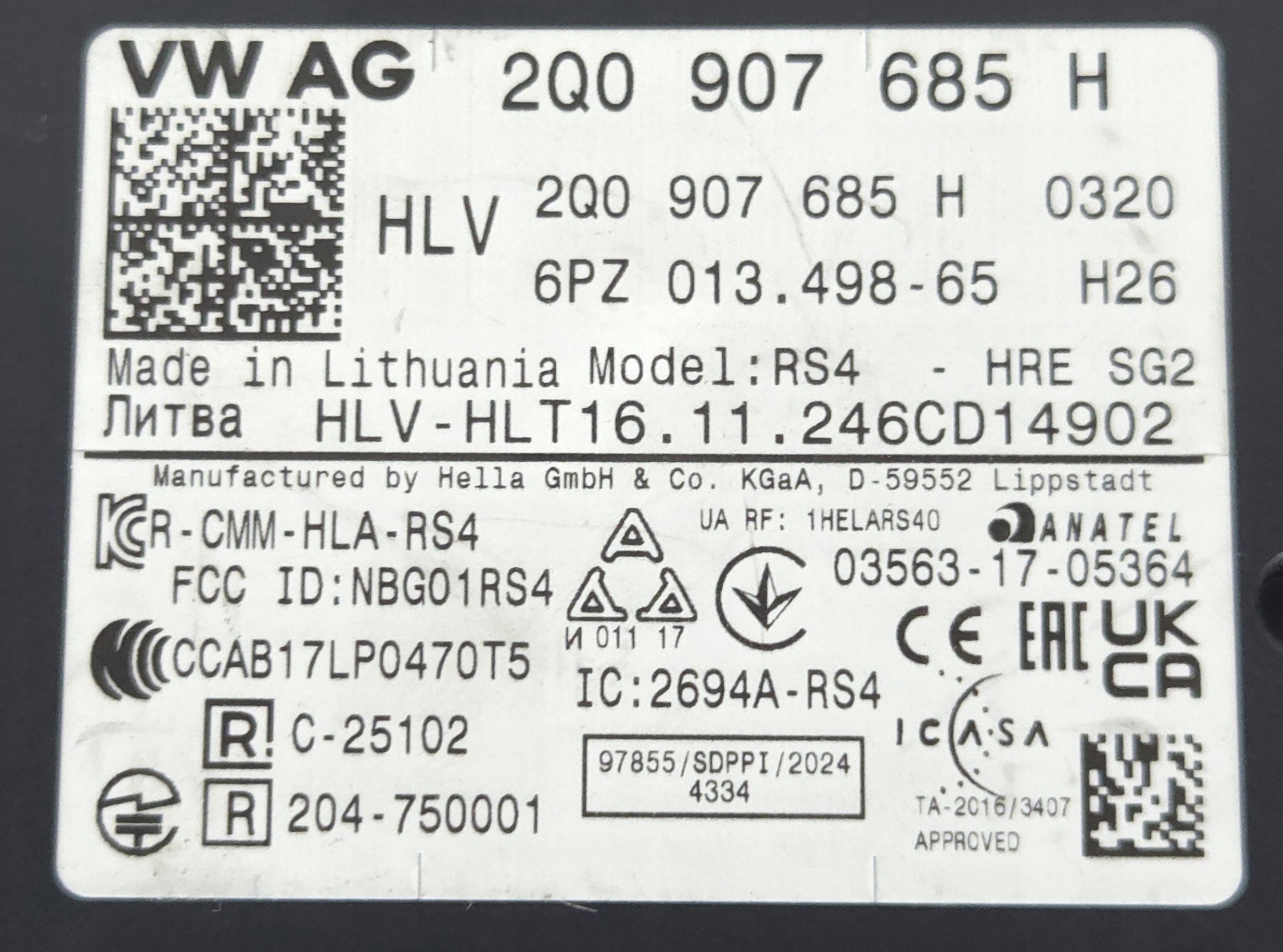 Просматривая «Audi VW 2Q0907685H Assembrag», вы можете быть уверены, что данный товар из каталога «Датчики полосы движения» будет доставлен из Польши и проверен на целостность. В цене товара, указанной на сайте, учтена доставка из Польши. Внимание!!! Товары для Евросоюза, согласно законодательству стран Евросоюза, могут отличаться упаковкой или наполнением.