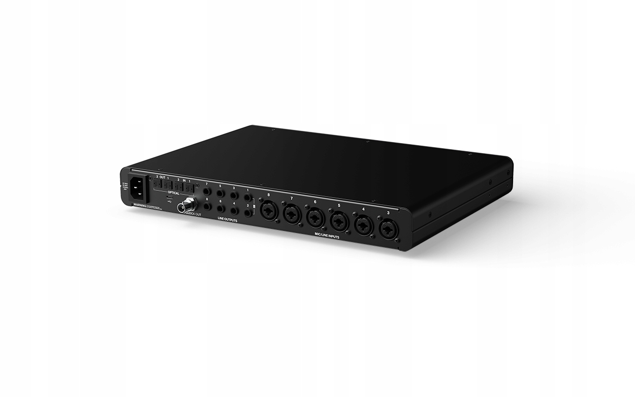 восемь микрофонных предусилителей, в том числе два с инструментальными входами JFET, восемь выходов линий, два независимых выхода для наушников, два входа и два оптических выхода ADAT/SPDIF, позволяющие расширить систему до 24 каналов! Это не просто звуковая карта, но профессиональная рабочая станция, благодаря которой вы подключаете много источников звука, настраиваете идеальную систему прослушивания или прикрепляете больше внешних аудиоустройств, например, эффекты или усилители наушников. Большой цветной дисплей на передней части устройства облегчает управление всеми функциями, позволяет отслеживать входные и выходные сигналы и регулировать усиление на отдельных каналах. Простой контроль с одной ручкой заставляет вас иметь все под рукой! Также необходимо упомянуть функцию SmartGain, известную из предыдущих моделей, что в этом случае работает независимо на всех каналах одновременно, что удивительно ускоряется со многими источниками звука. Сплошное металлическое корпус, внутренний источник питания, часы, выступающие для внешних устройств и возможность установления в стойке дополняют полное изображение профессионального оборудования с высоким содержанием