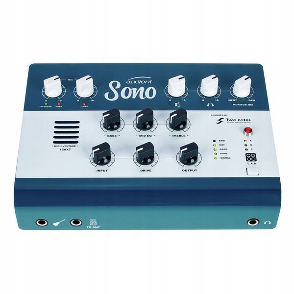 Audient Sono — — это профессиональный USB-аудиоинтерфейс, созданный специально для гитаристов. Sono оснащена аналоговой лампой 12AX7, разрешением звука 24 бит/96 кГц, 3-полосным регулятором тембра и выходом повторного усиления от известного британского бренда Audient.