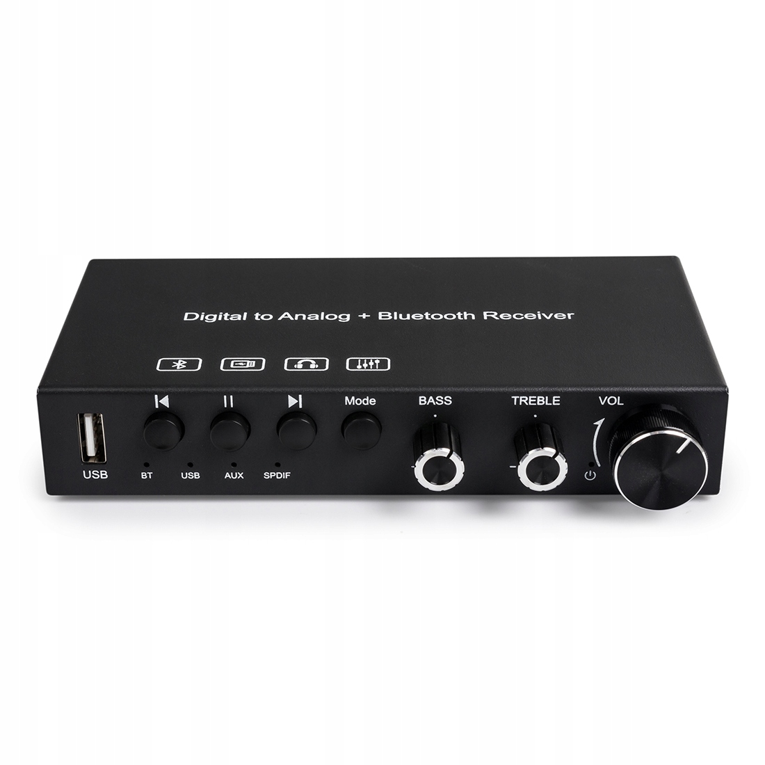 Преобразователь ЦАП (цифро-аналоговый преобразователь) позволяет преобразовывать цифровой сигнал Toslink или коаксиальный в аналоговый стереосигнал (в виде L/R Audio 2xRCA или разъема 3,5 мм). Кроме того, он поддерживает Bluetooth 5.0 и USB-медиаплеер.