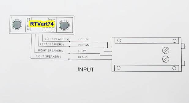 Специальный преобразователь, предназначенный для установки выхода RCA в каждую магнитолу. Подключаем преобразователь к выходам громкоговорителей на магнитоле, от преобразователя получаем два выхода RCA. К нему можно подключить любой автомобильный усилитель или активный звуковой сигнал с усилителем выходы RCA. Преобразователь регулируется двумя потенциометрами. Регулируется мощность сигнала на выходе RCA. Регулируя его, мы можем увеличить громкость на выходе усилителя. Конвертер также можно использовать во многих магнитолах, у которых выходы RCA уже заняты и мы хотим подключить дополнительное внешнее устройство.