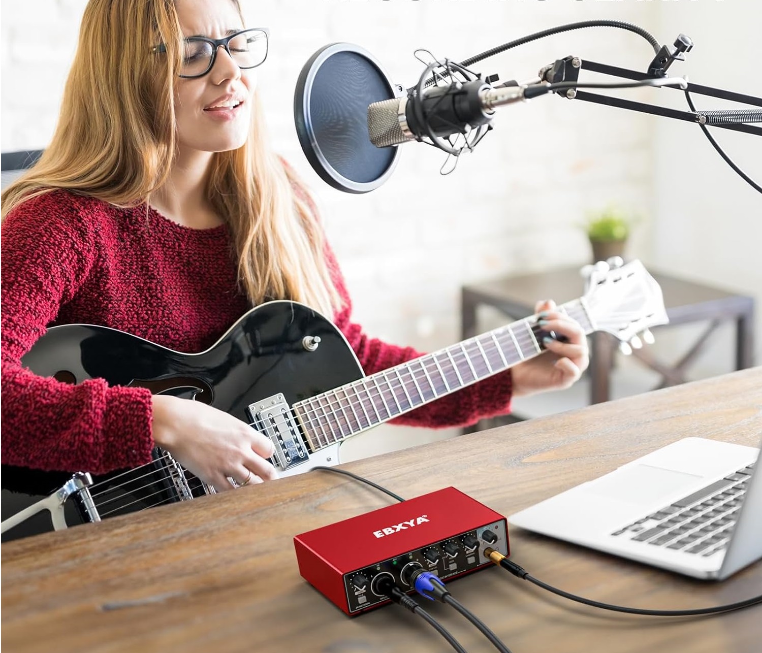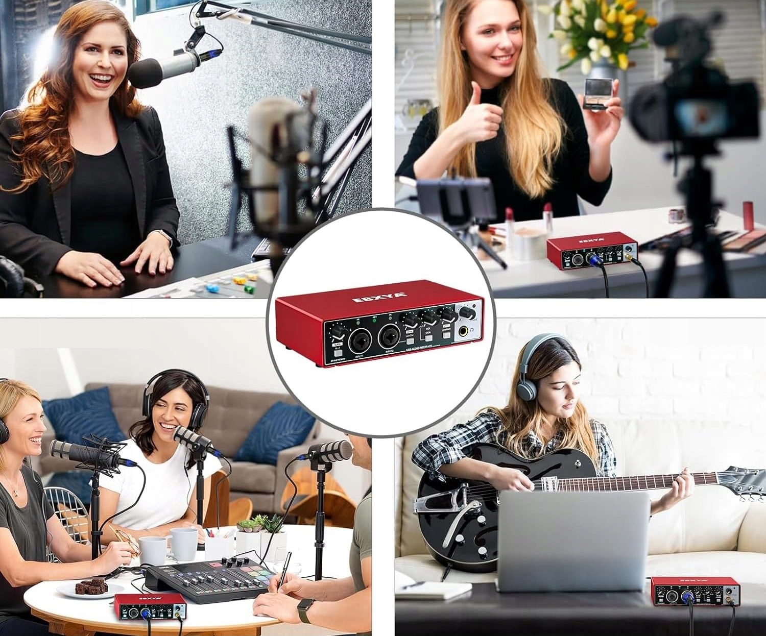 АУДИО-ИНТЕРФЕЙС USB EBXYA 2i2 24-бит / 192 кГц 48 В ПОДКЛЮЧИ И ИГРАЙ КРАСНЫЙ