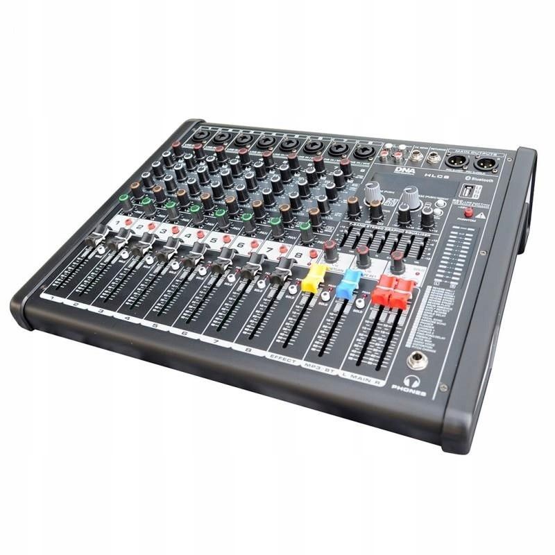 DNA HLC 8 — профессиональный аналоговый аудиомикшер, оснащенный восемью входными каналами, высококлассными предусилителями, портом USB с функцией MP3 и стандартом беспроводной связи Bluetooth. Оборудование прекрасно подойдет в качестве сценического микшера во время небольших концертов и сценических выступлений, в репетиционных залах, а также в домашней студии звукозаписи.
