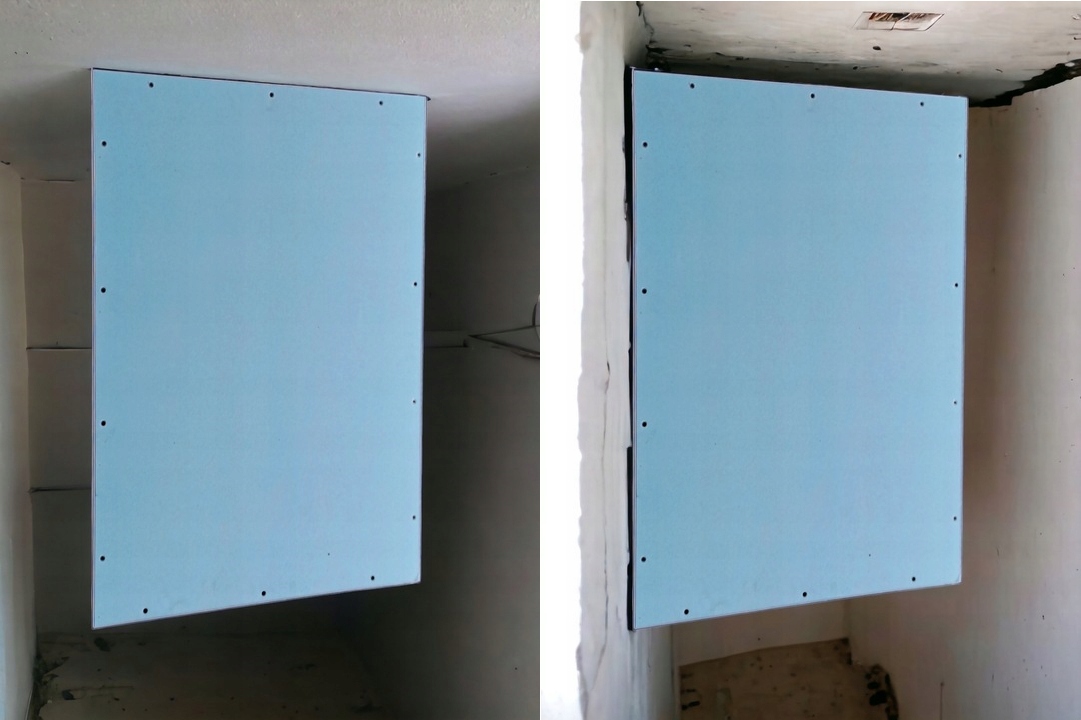 Двери осмотра заклепков производятся с помощью зеленой гипсовой пластины, покрытой слоем пропитки. Благодаря пропитке, тарелка более долговечна и отлично работает в комнатах с повышенной влажностью, такой как: ванная комната или туалет.