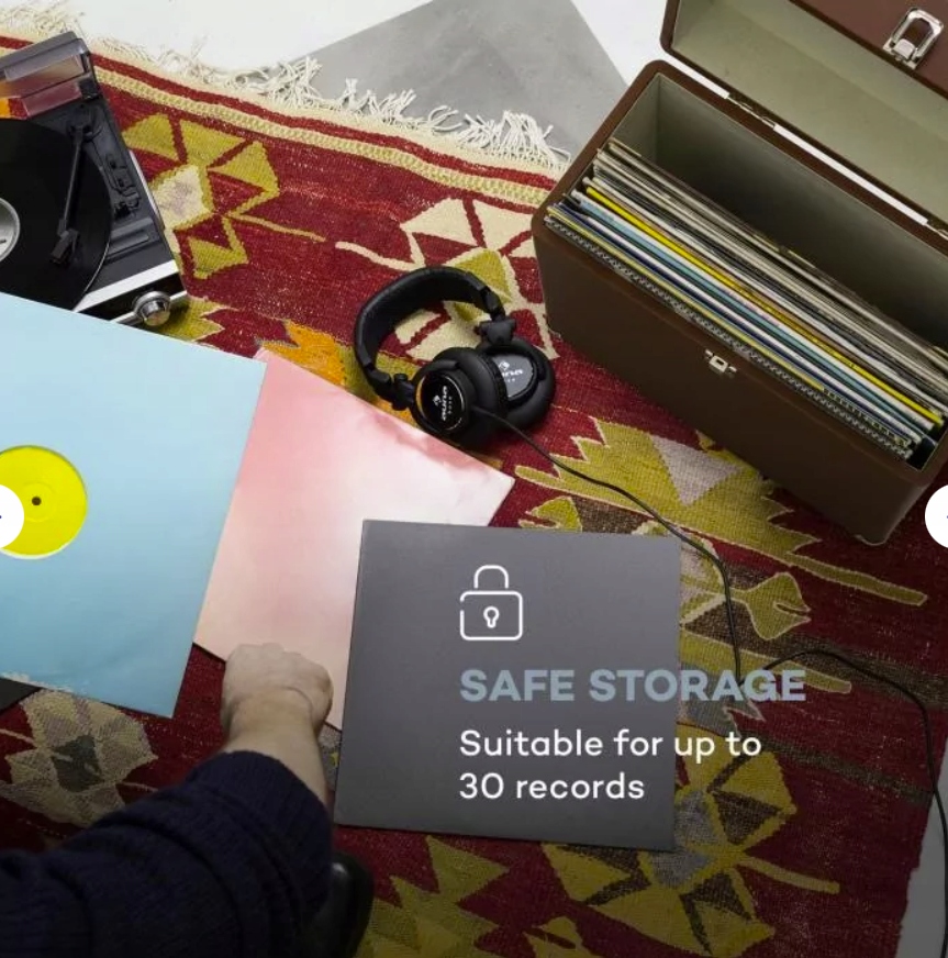 >Пыльная ностальгия: виниловый футляр auna Vinylbox в стиле ретро 1960-х годов дает любителям винила возможность перевозить свои драгоценные коллекции.