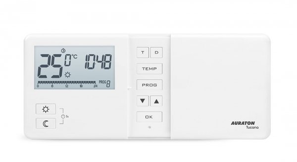 aaarton tucana b> позволяет пользователю управлять 7 независимыми настраиваемыми программами, при 4 независимо устанавливая температуры: дневное время, ночь, антикриминальные, отпуск. ЖК -дисплей имеет 3 цвета подсветки на выбор и адаптирован для работы в плохо освещенных комнатах. Еженедельный, температурный лайнер также имеет счетчик времени нагревательного устройства. Регулятор оснащен режимом работы ШИМ, состоящий из циклического переключения и отключения нагревательного устройства, сводя к минимуму колебания температуры. Алгоритм ШИМ поддерживает тепловой комфорт в комнате, опередив поведение системы отопления, при этом заботясь о минимальной энергии.