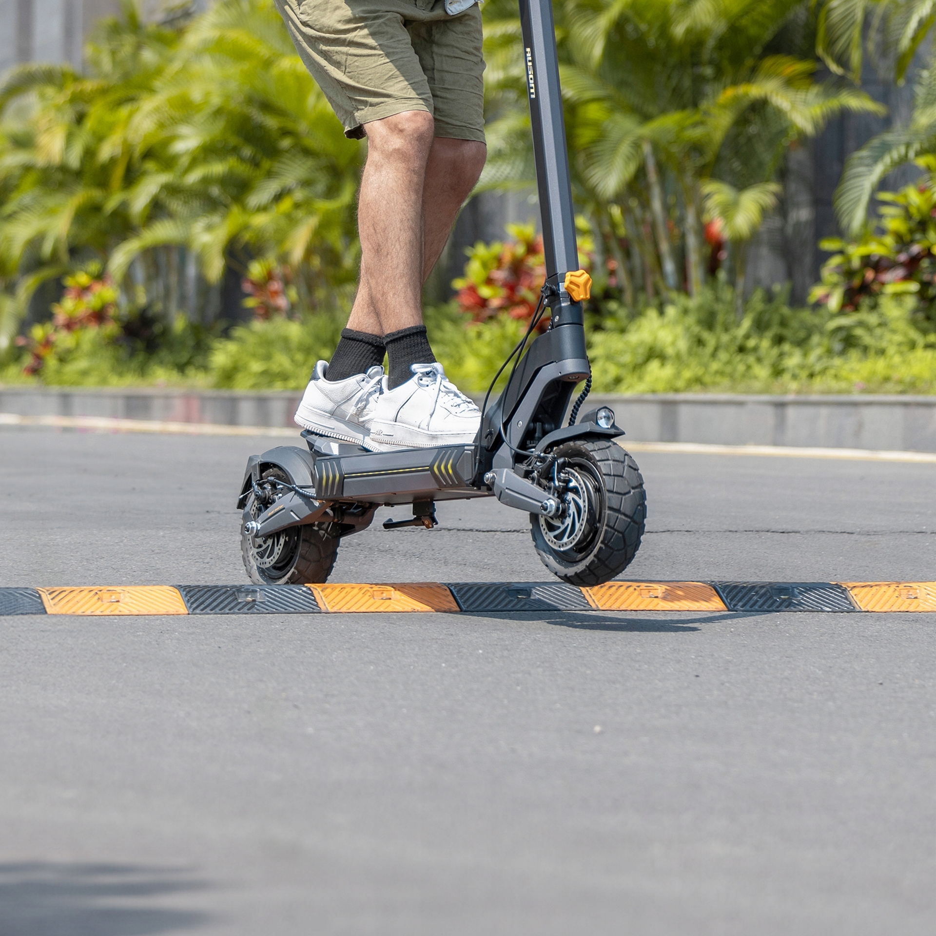 - Ausom L2 имеет двойную тормозную систему (E-ABS + дисковые тормоза), обеспечивающую управляемость в городском потоке, на крутых спусках и при резких остановках. Замок NFC защищает от кражи и позволяет быстро найти ваш автомобиль. Инновационный механизм двойного складывания минимизирует вибрации во время езды, а в сложенном состоянии - равномерно распределяет вес для комфортной переноски.