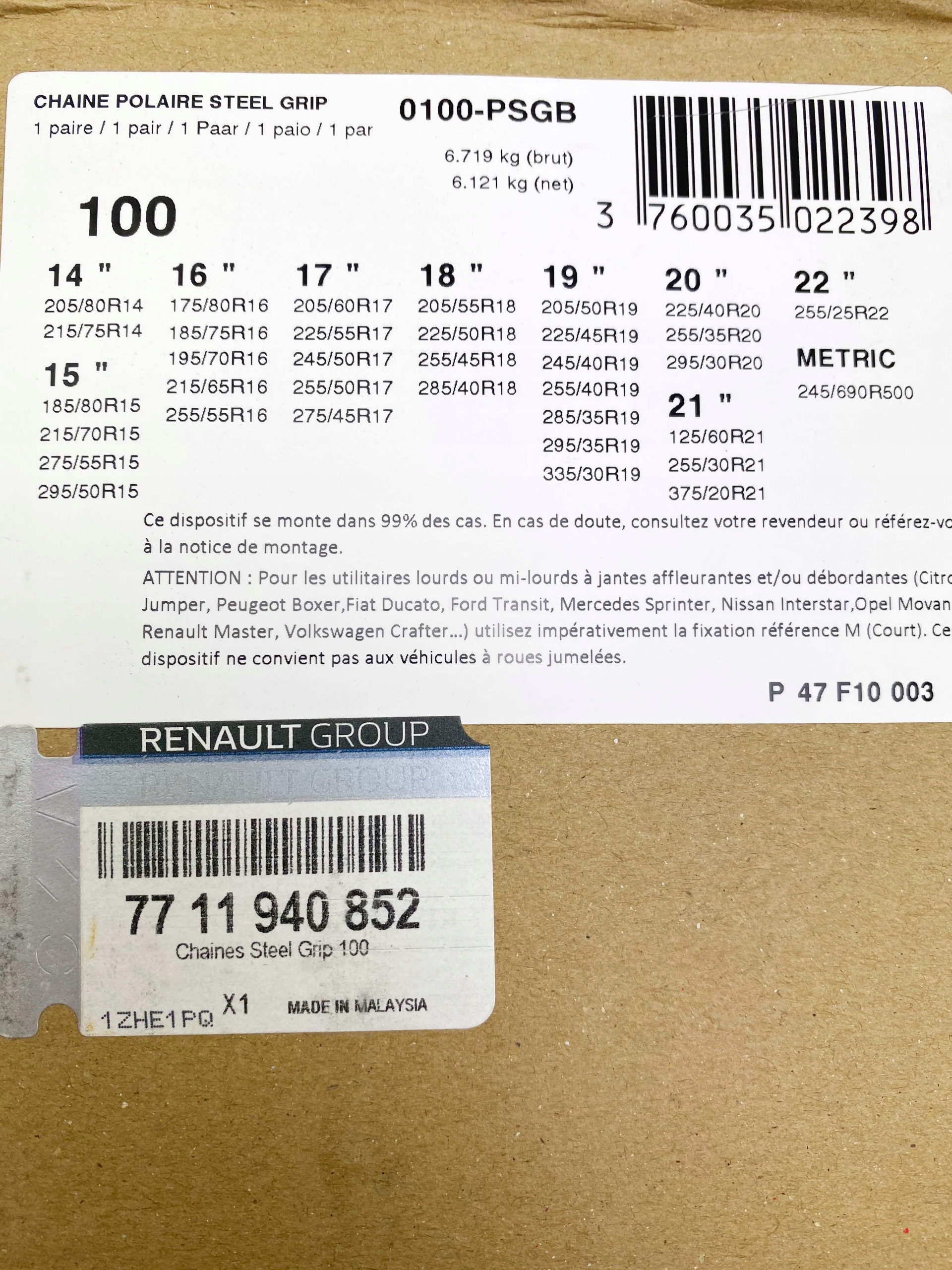 Новые оригинальные цепи противоскольжения Polaire Steel Grip, размер 100.
