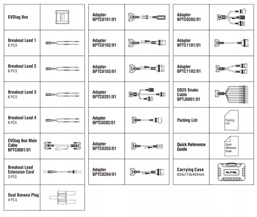 ● Включает блок EVDiag, программное обеспечение и адаптеры.