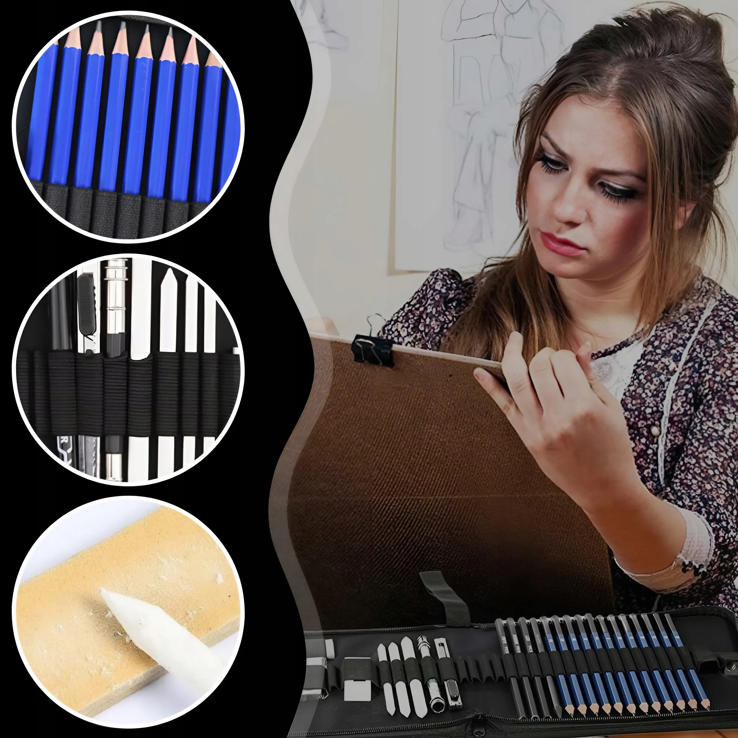 ПРОФЕССИОНАЛЬНЫЙ НАБОР ДЛЯ ЭСКИЗОВ И РИСОВАНИЙ 32-в-1 – В ЭЛЕГАНТНОМ ФОРМАТЕ