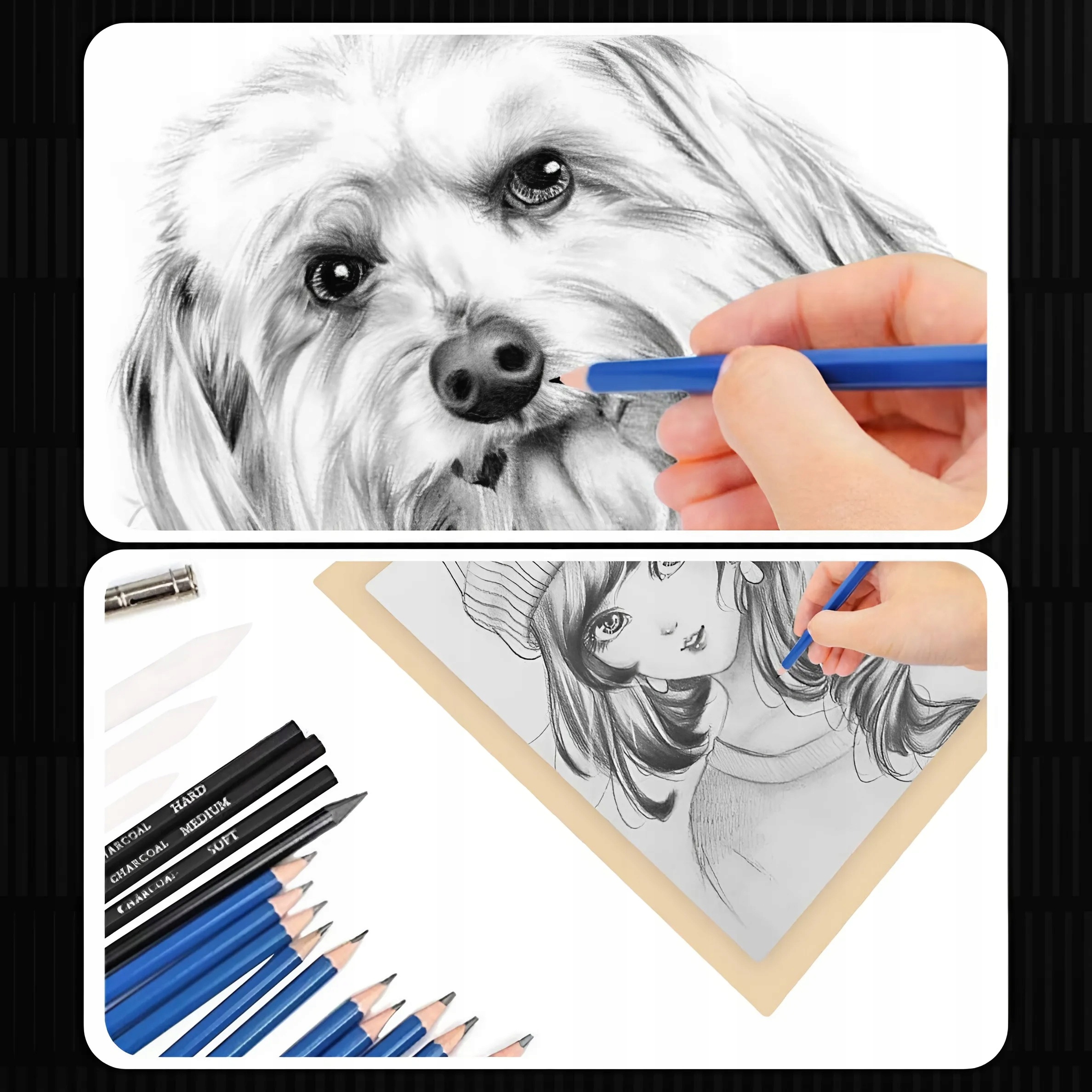 ✅ Все в одном месте — вам больше не придется искать отдельные элементы - все необходимые аксессуарыв одном удобном кейсе. Карандаши, уголь, ластики, карандаши и художественный нож — они всегда у вас под рукой, готовы творить в любой момент.