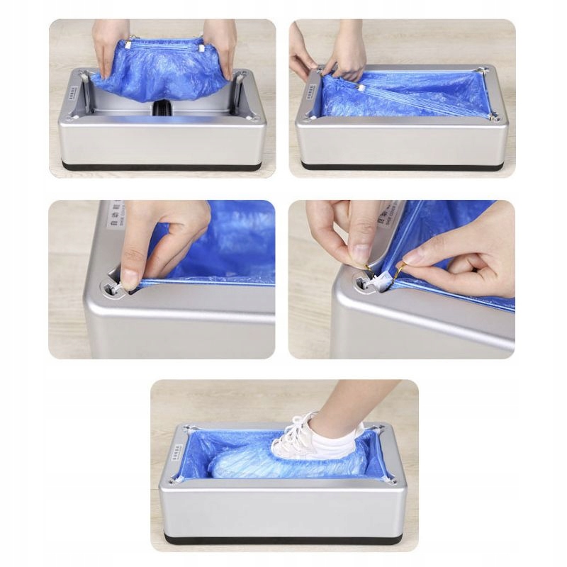 Автоматический диспенсер бахил поможет поддерживать чистоту пола в местах, где это необходимо, например, в больницах, детских садах и других. Вы можете надеть защитную обувь гигиеничным и безопасным способом. Просто аккуратно поместите ногу в дозатор и нажмите кнопку разблокировки. Дозатор автоматически нанесет средство для защиты обуви.