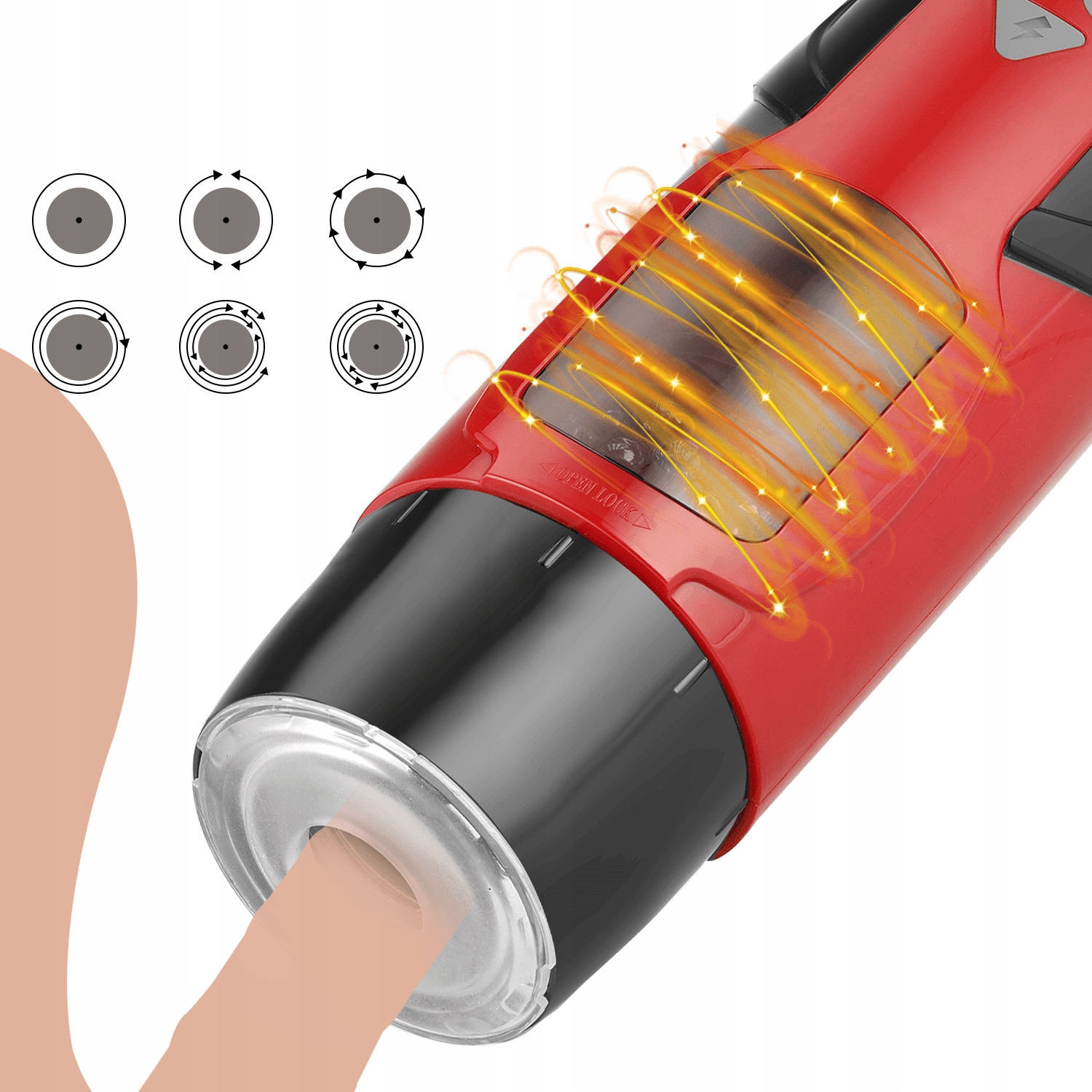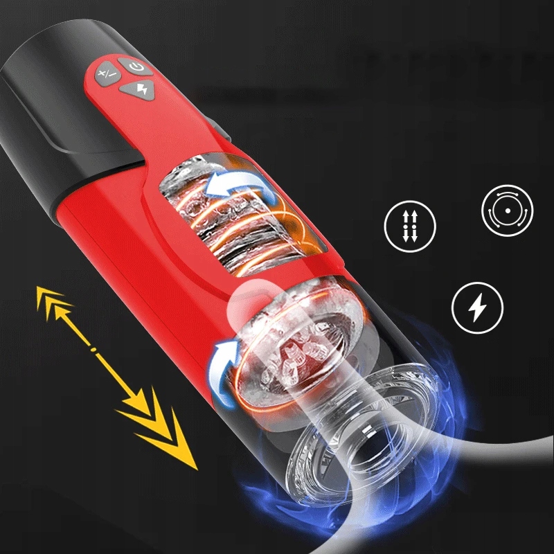 - Внутренняя часть мастурбатора вращается и движется вверх и вниз с разной скоростью, а стимуляция варьируется от медленной до быстрой, от легкой до сильной.