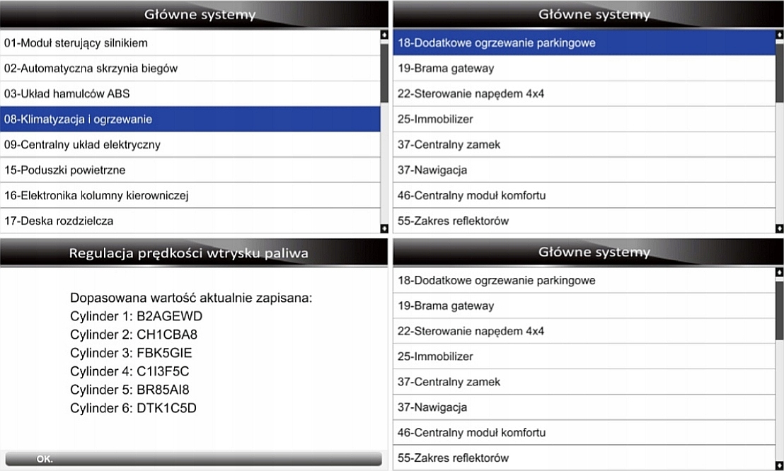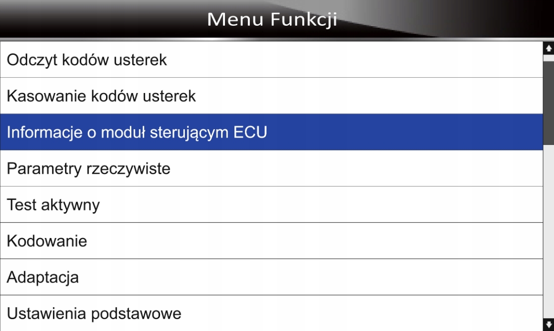 Она питается непосредственно от диагностического разъема автомобиля и имеет полное ПОЛЬСКОЕ меню (включая полное Польские описания кодов неисправностей и процедур обслуживания).