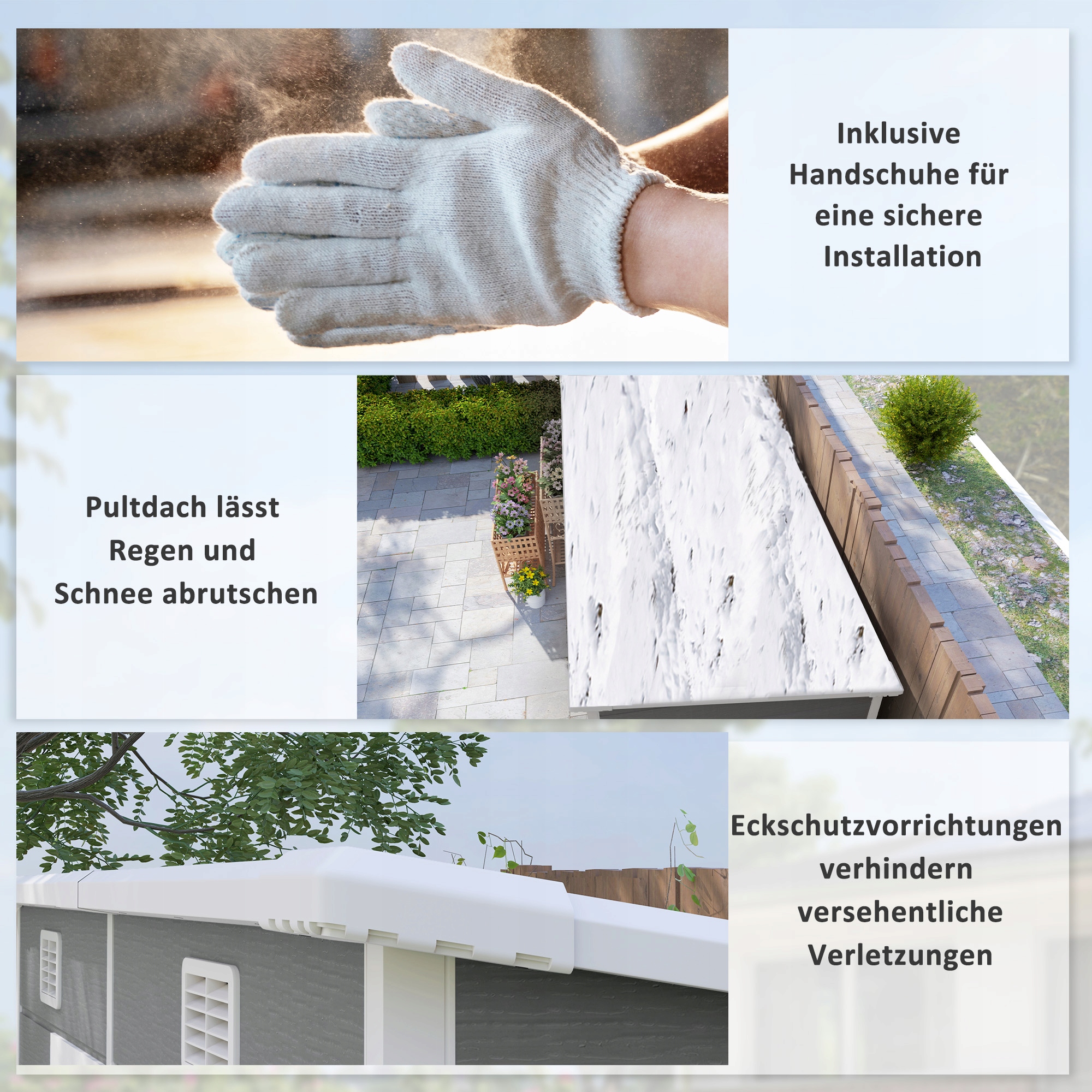 ● 1 x садовый дом с полом; ● Замок и ключ; ● 1 x пара перчаток; ● 1 x Инструкции;