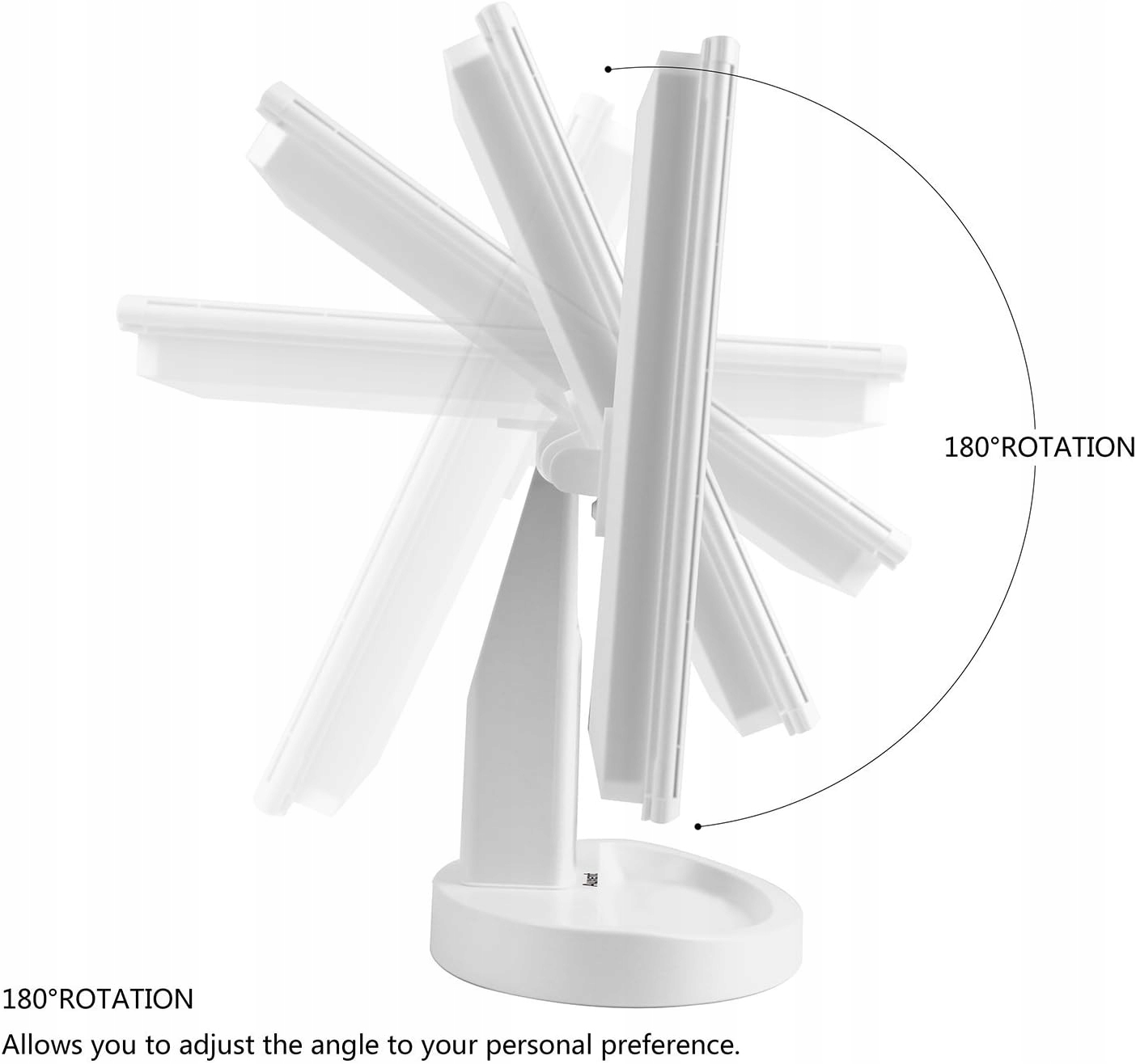ВРАЩАЮЩЕЕСЯ НА 180° ЗЕРКАЛО: при необходимости его можно отрегулировать в любое положение. Отрегулируйте зеркало с подсветкой под любым углом обзора, чтобы найти идеальный угол обзора в соответствии с вашими личными предпочтениями, чтобы вам было легче проверять свой макияж или прическу, где бы вы ни находились!